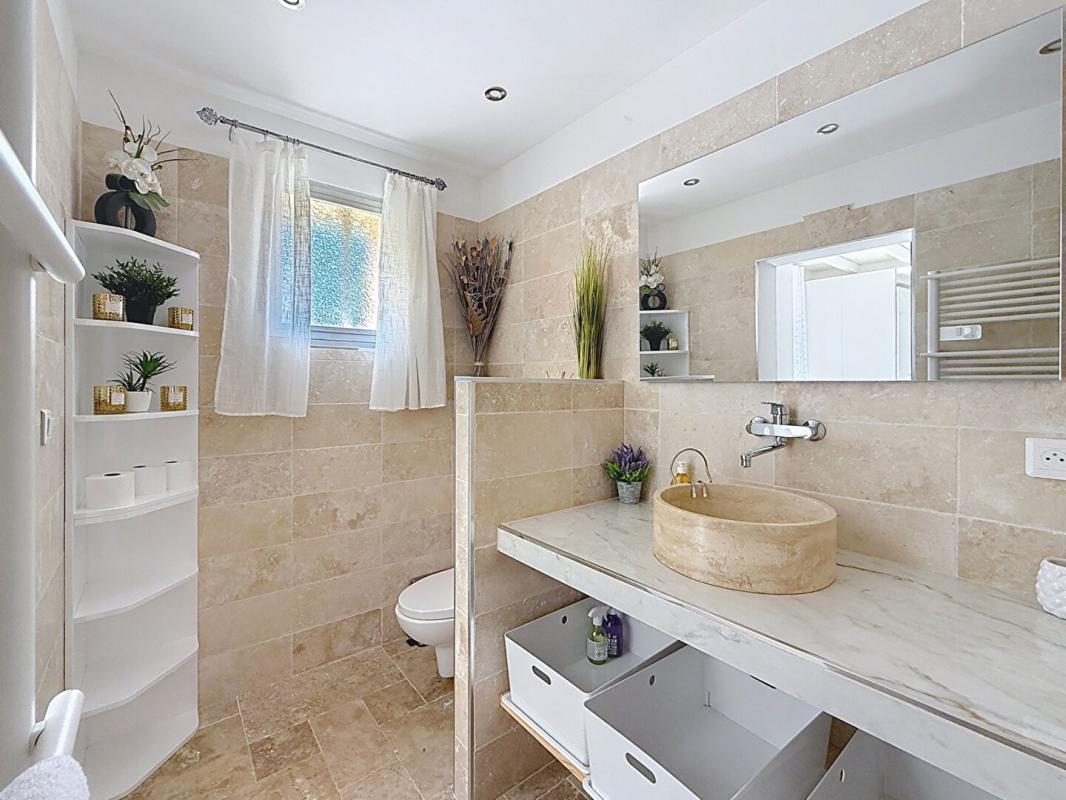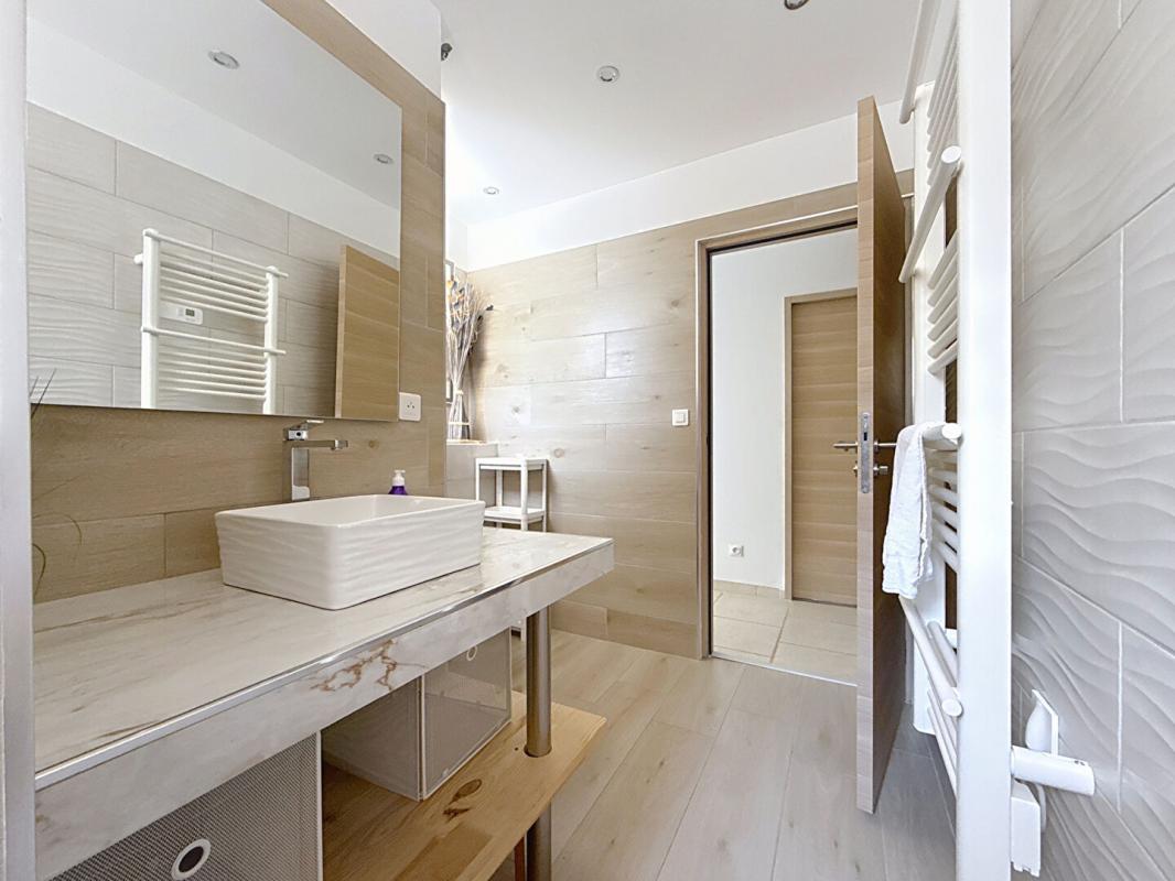 En rez-de-jardin, un T4 de 145 m² comprenant un vaste séjour lumineux avec cheminée, une cuisine américaine entièrement équipée, une arrière-cuisine et un cellier, Un espace nuit composé d'une suite parentale de 35 m² avec dressing, salle d'eau et WC. Deux chambres supplémentaires, une salle d'eau indépendante avec WC.