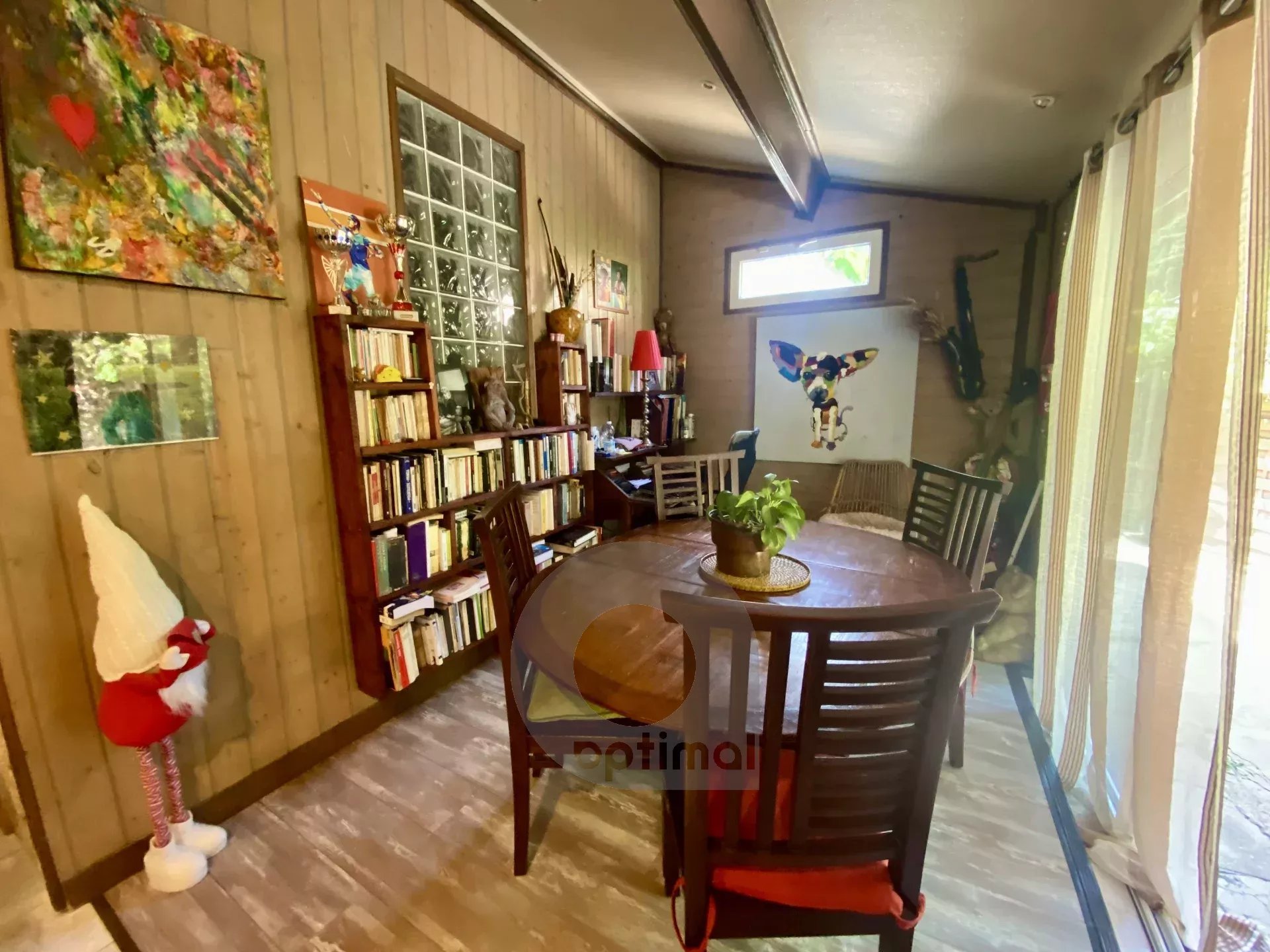 La maison est située dans un cadre verdoyant, calme et paisible.