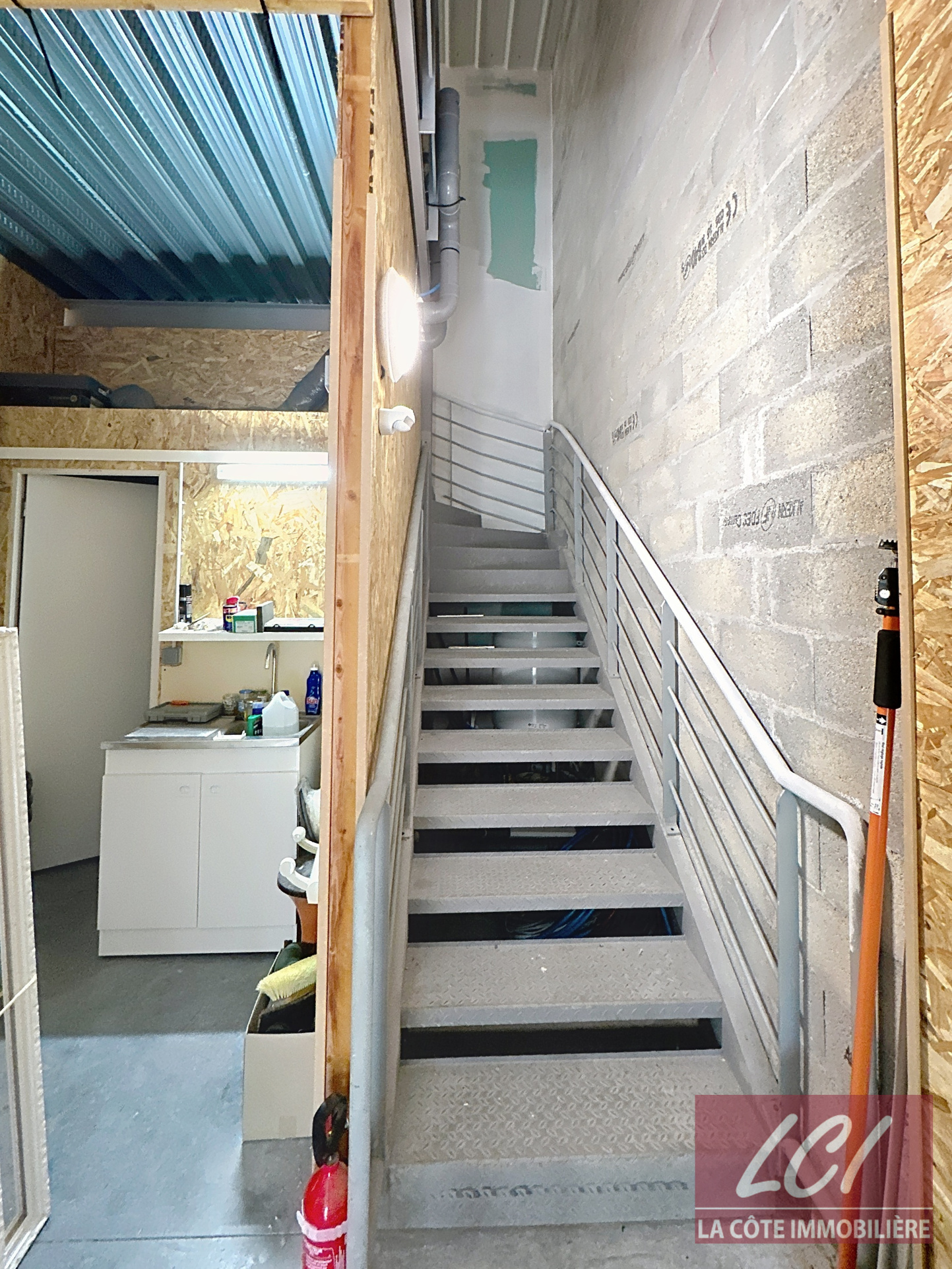 Au sein du Parc d'activités de La Teste de Buch (accès facile depuis l'autoroute), ce local récent de 96m2 au sol (loi carrez 92,23m2) comprend deux niveaux aménagés respectivement en un hall au rez-de-chaussée desservant deux pièces (cloisons démontables), et sanitaires (wc et salle d'eau), et à l'étage : un grande pièce lumineuse (possibilité de cloisonner) et sanitaires. Cette distribution est idéale pour personnes en quête d'un bel espace bureau, ou pour partager une activité (co-working, mise en location d'un niveau...). Le local dispose d'une place de parking privative, au sein du bâtiment en copropriété édifié en 2015 de 32 lots et comprenant 24 locaux à usage d'activité ou entrepôt. Charges prévisionnelles équivalentes à environ 38EUR /mois.