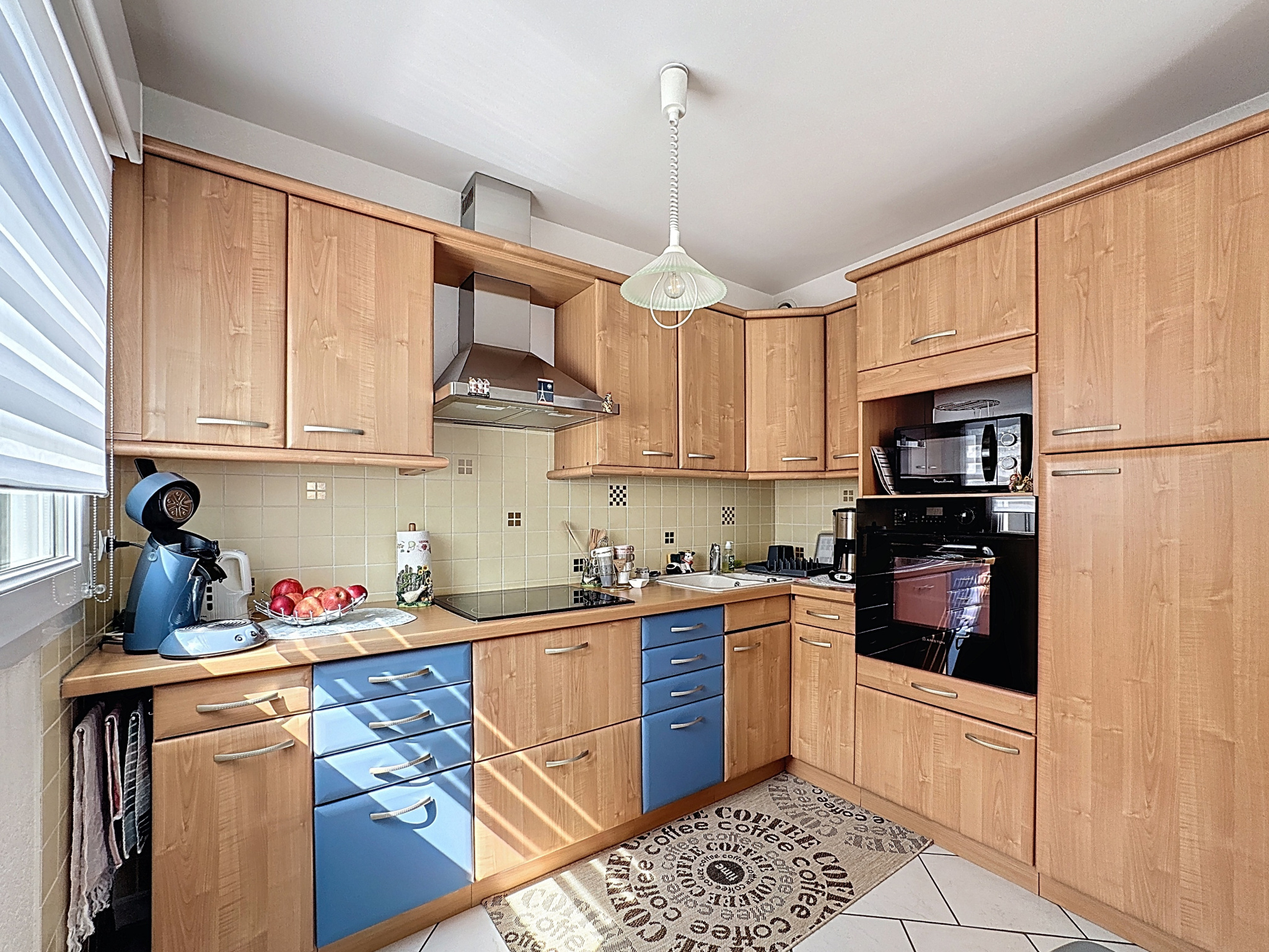 Une cuisine ouverte et entièrement équipée,