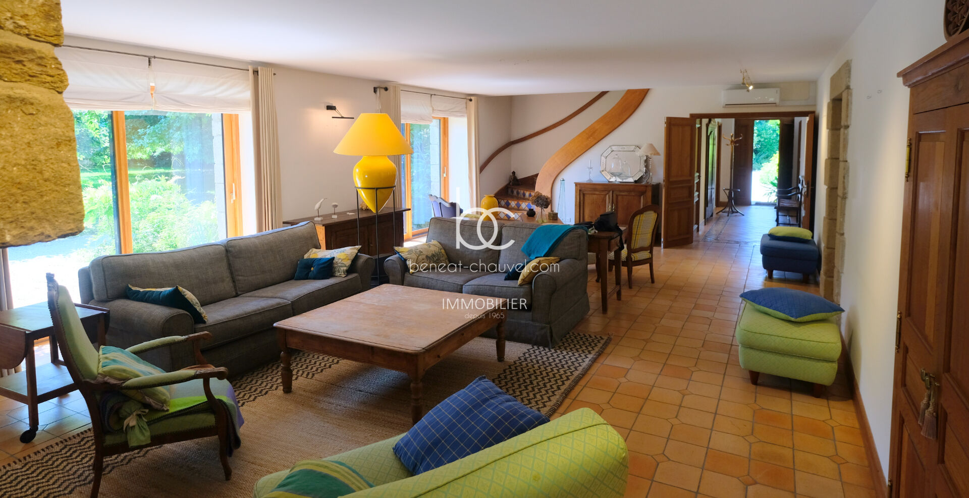 La maison principale de cet ancien corps de ferme en pierre édifié au XIX ème siècle, entièrement rénové et agrandi, présente des espaces de vie généreux et ouverts entre eux. Au rez-de-chaussée : hall d'entrée, grande pièce de vie avec cheminée, salle à manger, cuisine ouverte, arrière-cuisine, lingerie, bureau et chambre avec salle d'eau privative. A l'étage : suite parentale avec dressing et salle de bains, chambre avec salle d'eau et espace détente en mezzanine (aménageable en chambre - Salle d'eau).