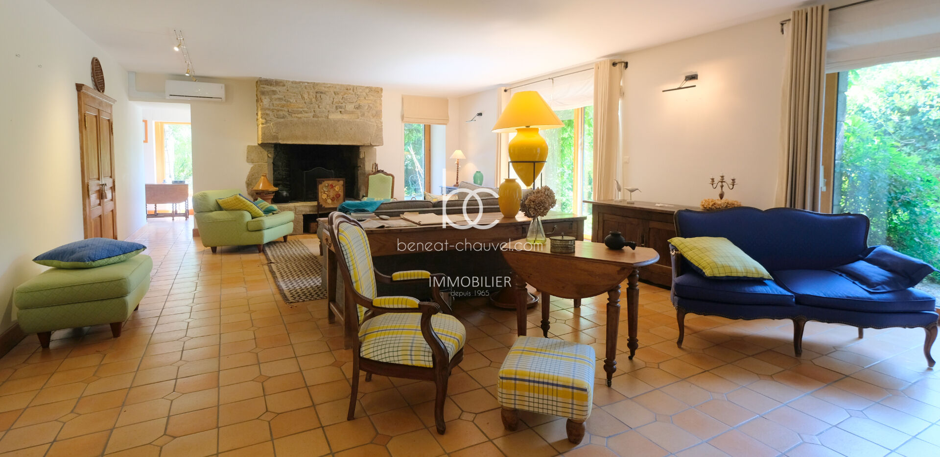 Situé au coeur de Sarzeau dans un parc boisé et paysagé de plus d'un hectare, vous serez séduits par le charme et la tranquillité qu'offre cette propriété de caractère.