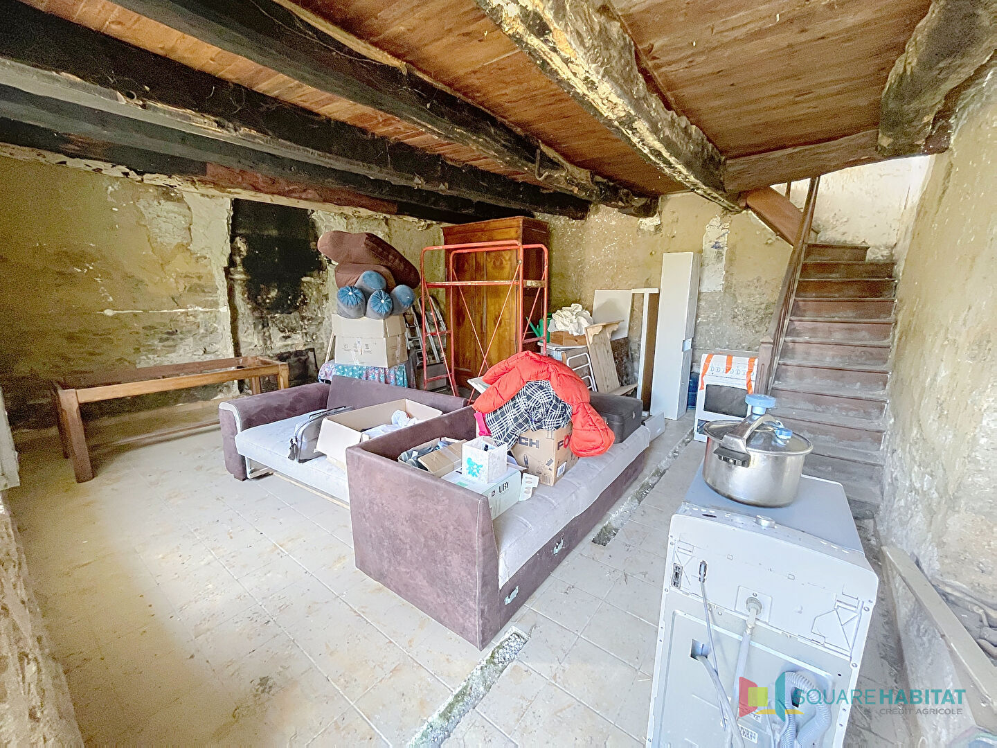 Propriété composée d'une maison principale à rénover, d'un garage et un cabanon sur un grand terrain de plus de 2500 m², dans un petit hameau, environnement calme à la campagne.