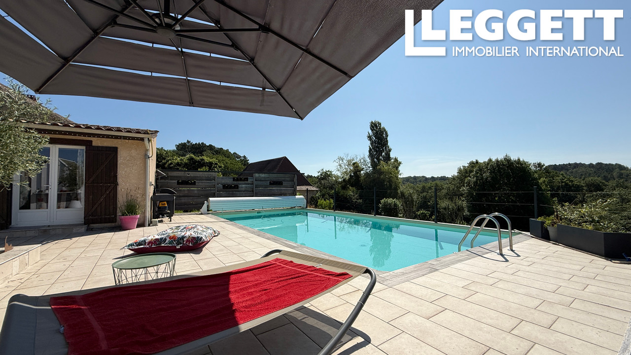Un studio indépendant de 15m² (chambre, douche, lavabo, WC) est idéal pour les invités. Profitez de la piscine avec vue imprenable sur la campagne.