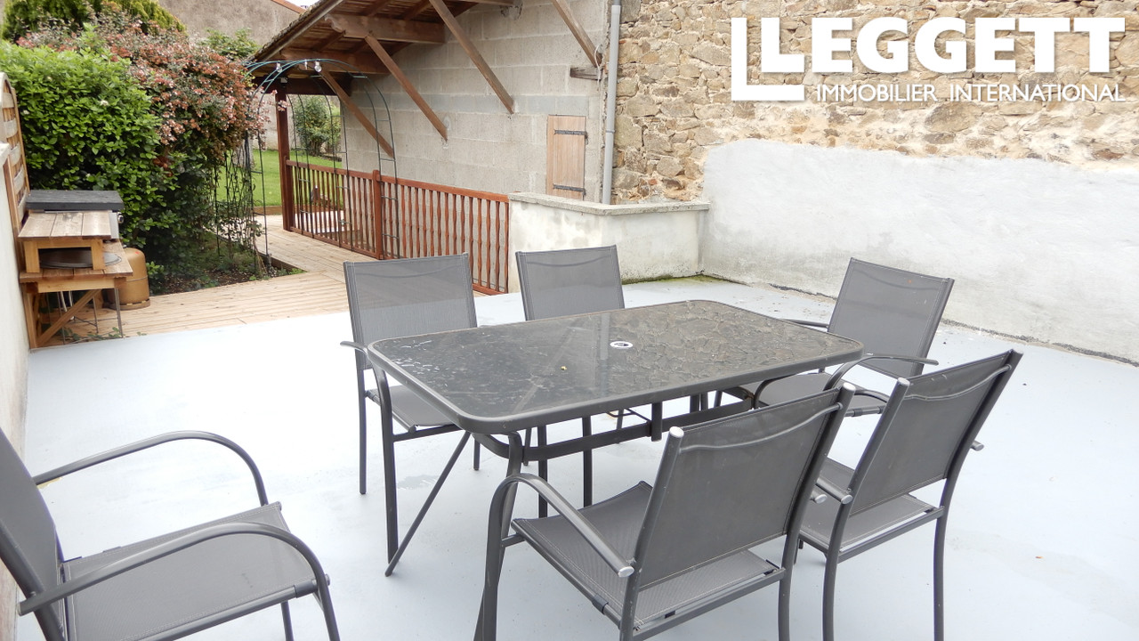 A08723 - Rare sur le marché - une maison de village de 4 chambres avec jardin attenant, terrasse et grange en pierre indépendant en bon état. La maison a ete recemment mise a jour a un bon niveau, confortable et spacieuse dans une excellente situation. Elle est branchée au tout-à-l'égout.