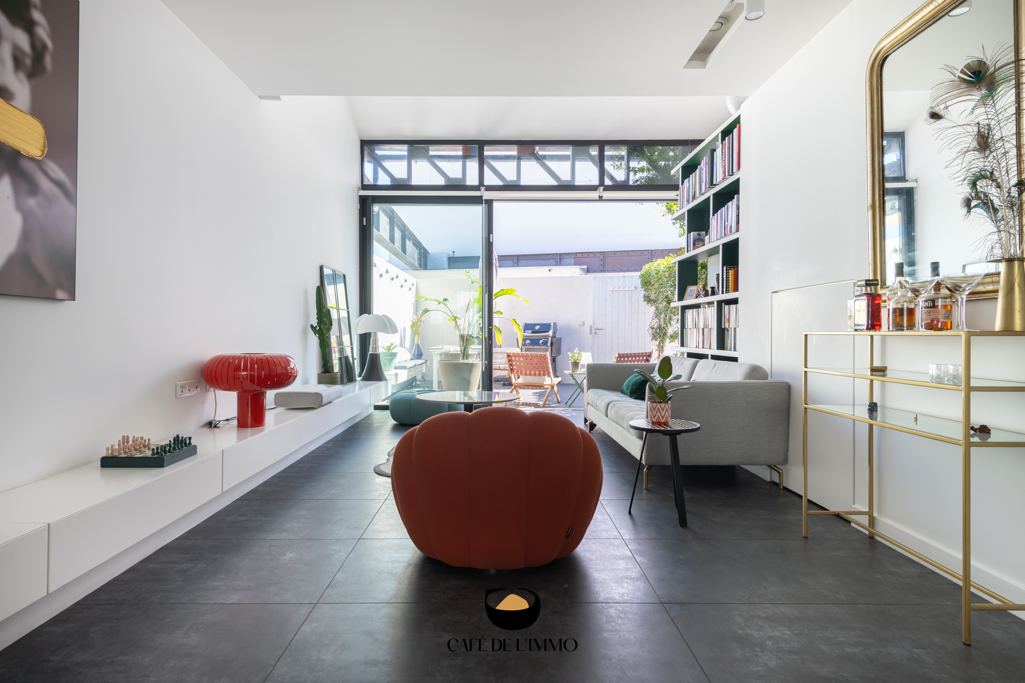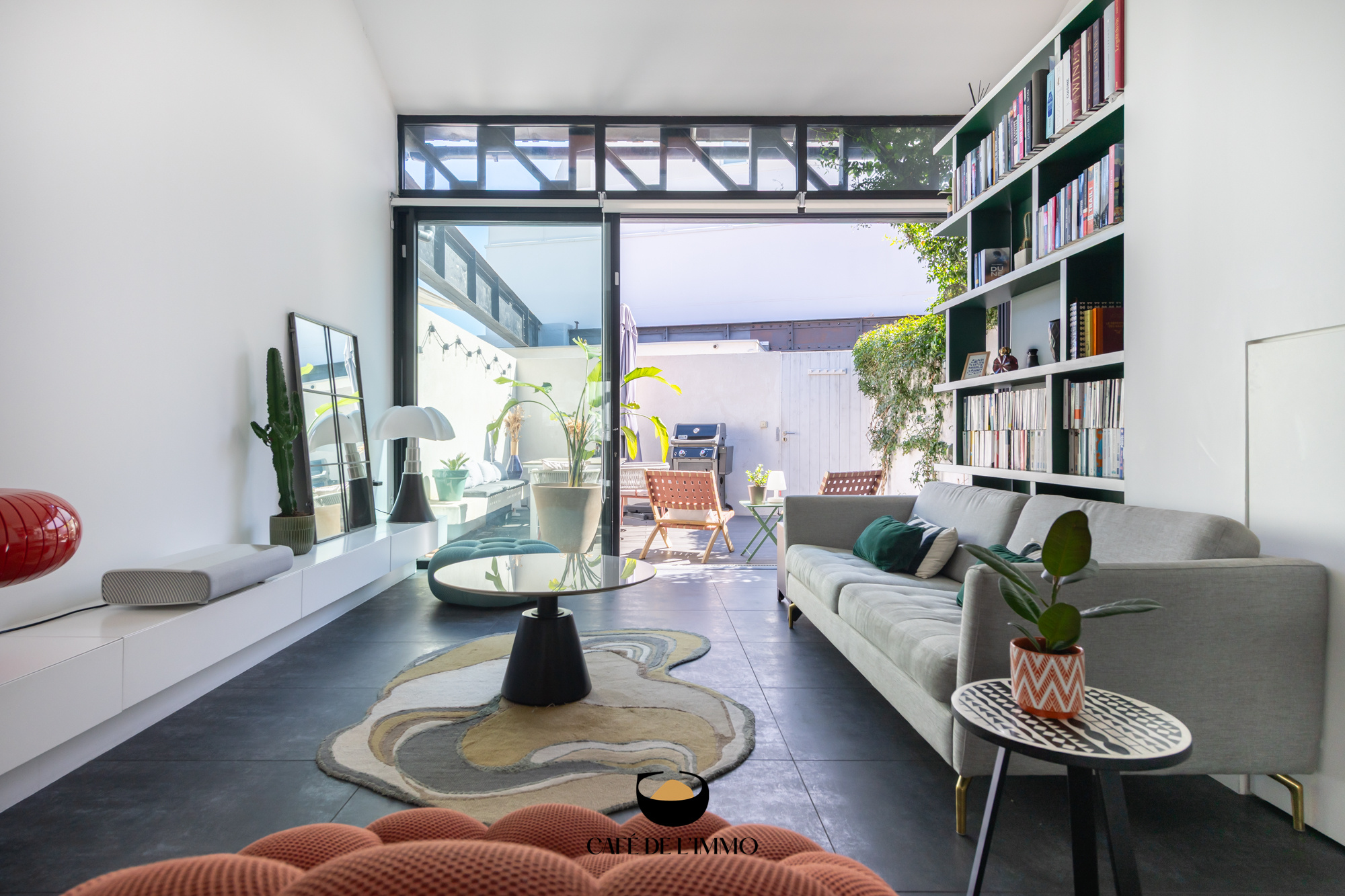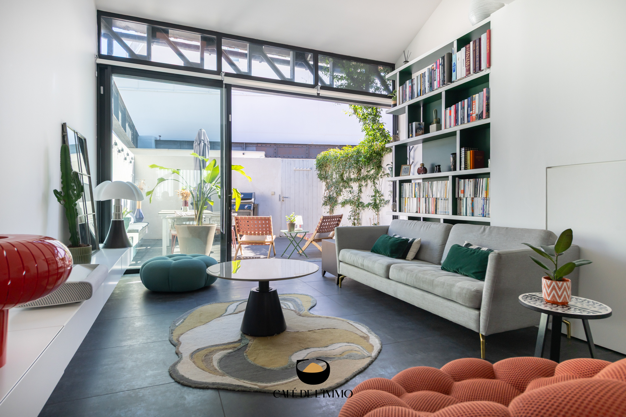 Accessible depuis une impasse, à l'abri des regards, ce bien aux allures de loft contemporain ne vous laissera pas indifférent. On y entre par une agréable terrasse de près de 20 m2, au calme absolu. Les poutres métalliques de style Eiffel donnent le ton de cet espace propice à un repas entre amis ou tout simplement à un café ensoleillé.