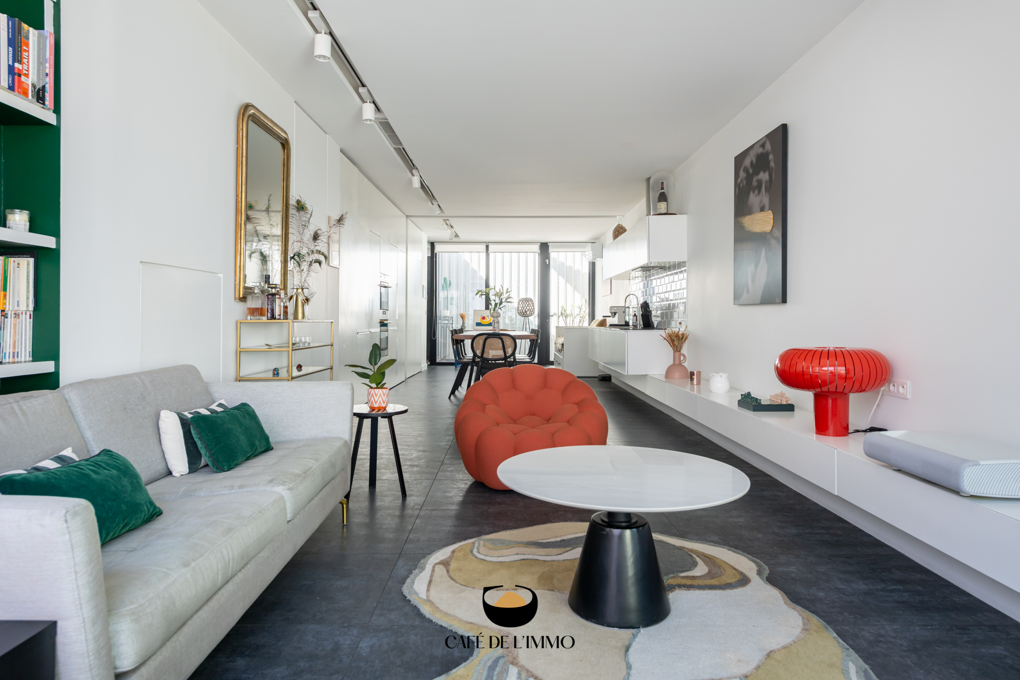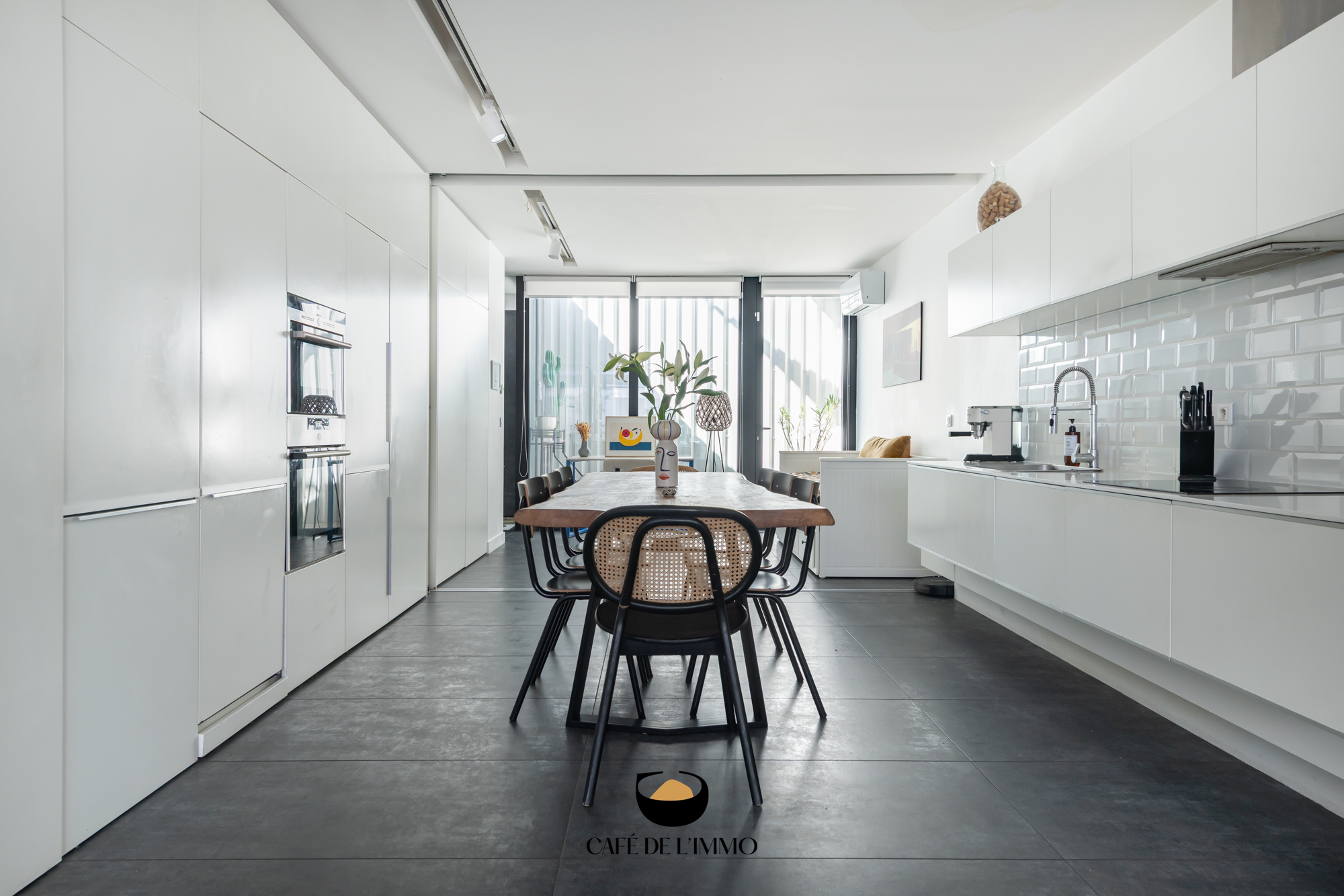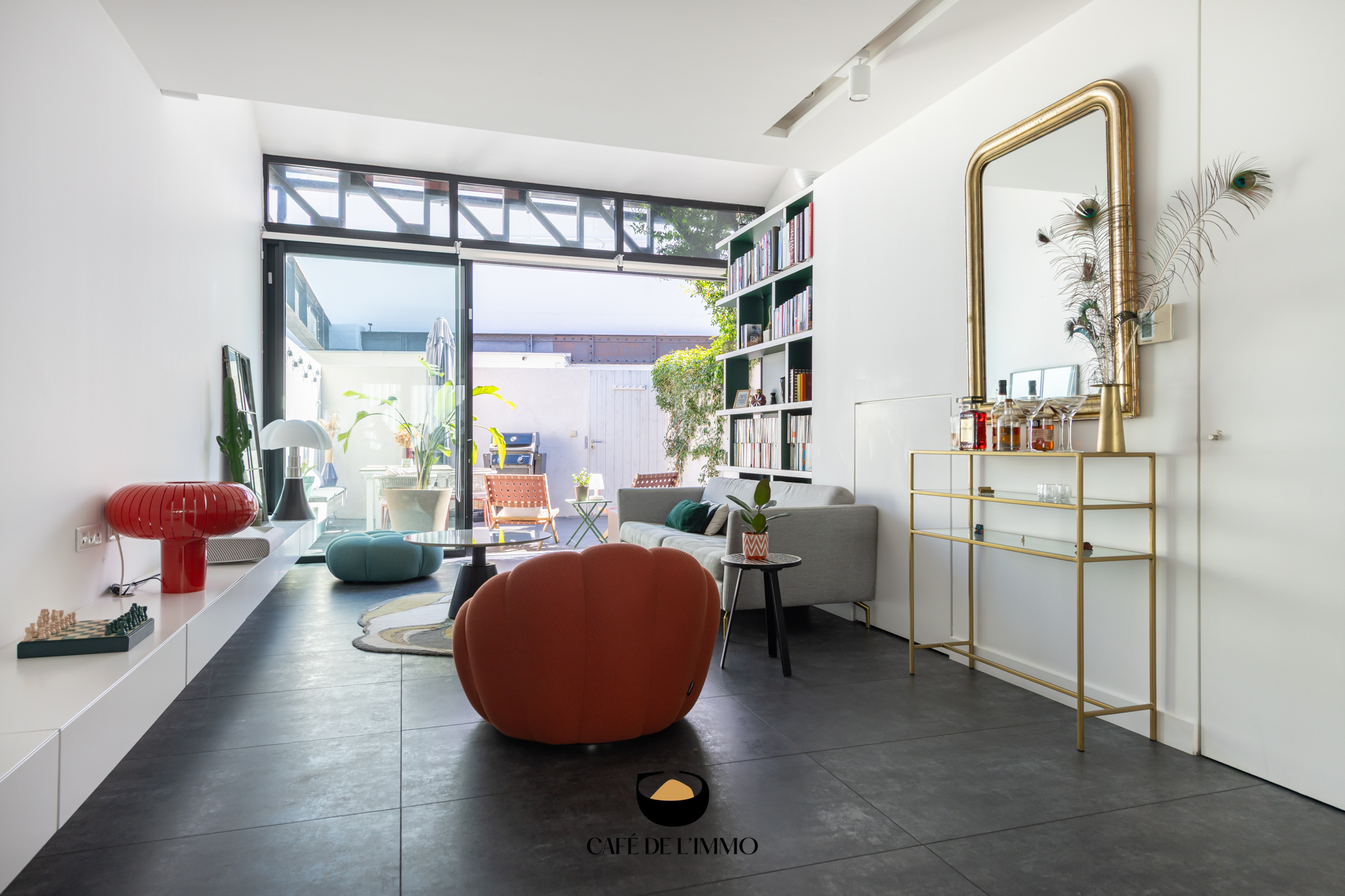 Accessible depuis une impasse, à l'abri des regards, ce bien aux allures de loft contemporain ne vous laissera pas indifférent. On y entre par une agréable terrasse de près de 20 m2, au calme absolu. Les poutres métalliques de style Eiffel donnent le ton de cet espace propice à un repas entre amis ou tout simplement à un café ensoleillé.