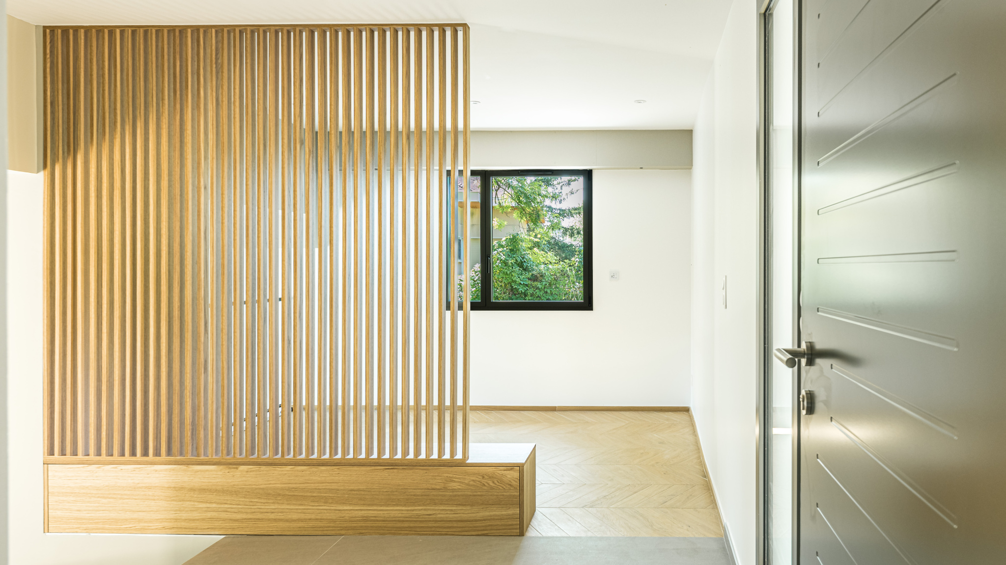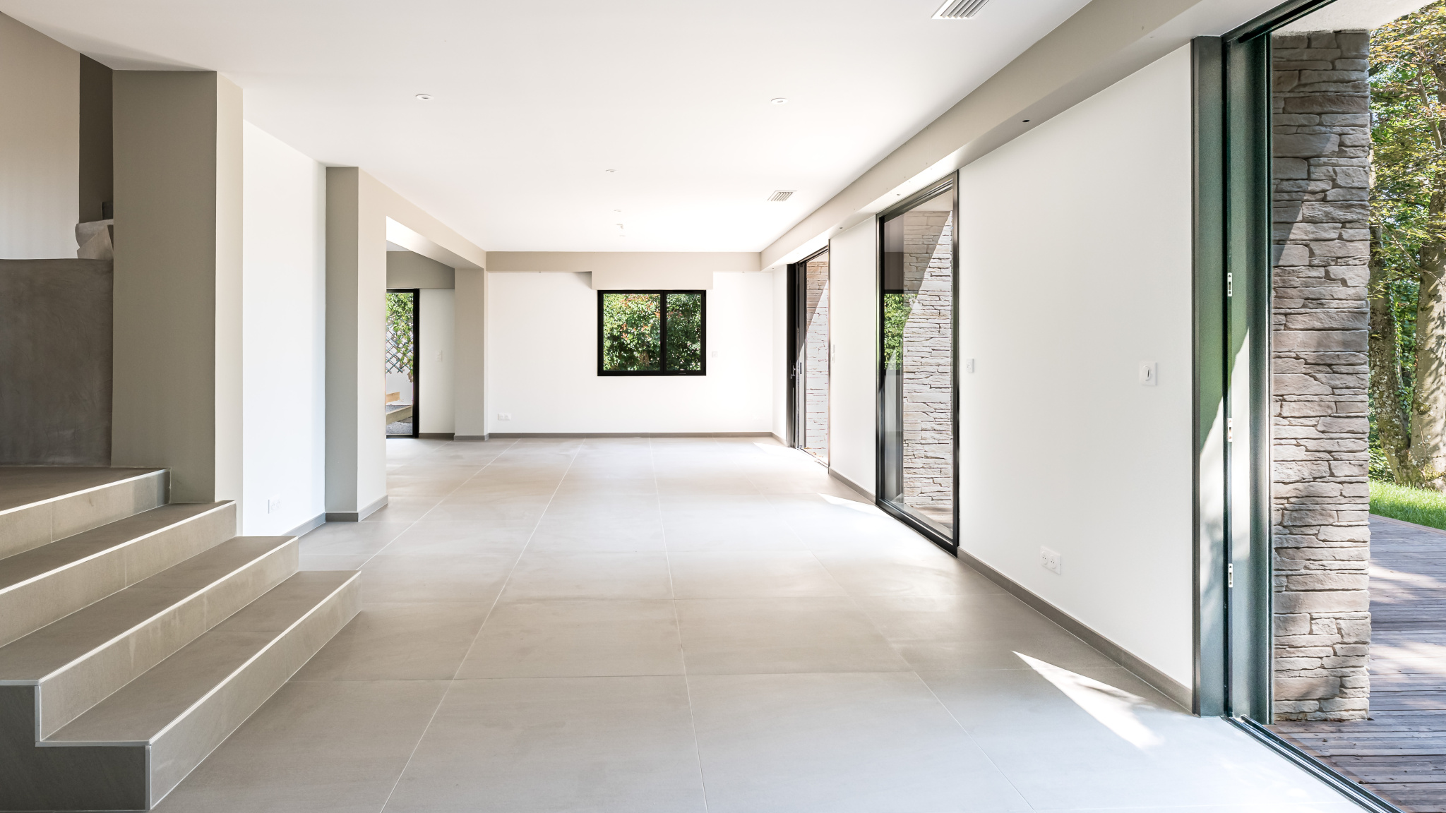 Une pièce de vie de 61 m2 avec cuisine ouverte et baies vitrées à galandage