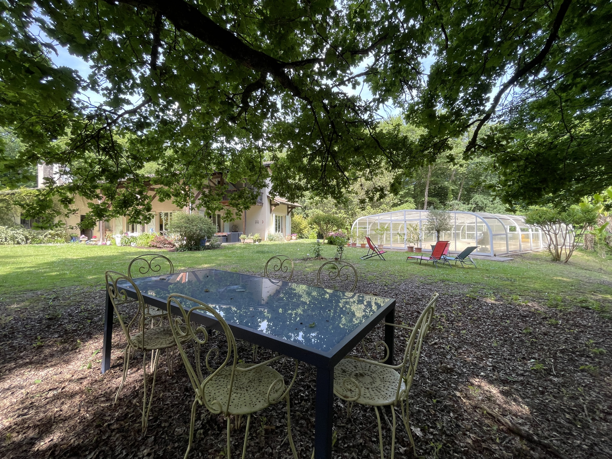 Cette maison d'une surface de plus de 300 m2 allie espace et confort. Discrètement protégée des regards, elle s'ouvre sur un chemin privé de 100 mètres menant à un véritable havre de paix. Vous apprécierez la terrasse ombragée et la piscine de 12 mètres de long, équipée d'un abri sécurisé qui permet de profiter de la baignade même en mi-saison. À l'intérieur, le rez-de-chaussée séduit par son sol en marbre élégant et son vaste espace de vie de plus de 70 m2, doté d'un plafond cathédrale qui confère une impression d'ampleur et de luminosité, avec une vue dégagée sur le jardin et sa végétation luxuriante. Le coin nuit comprend une suite parentale, deux chambres supplémentaires ainsi qu'une grande salle d'eau. À l'étage, une mezzanine de 65 m2 offre un espace polyvalent idéal pour un coin détente, un espace jeux ou un bureau. Ce niveau comprend également deux chambres spacieuses, dont une de plus de 30 m2, ainsi qu'une salle d'eau. Un garage d'environ 100 m2 complète ce bien exceptionnel, offrant un espace sécurisé pour plusieurs véhicules, du matériel et autres rangements. Pour toute information ou pour organiser une visite, n'hésitez pas à contacter l'équipe Herranz Immobilier, qui vous accompagnera avec professionnalisme dans la réalisation de votre projet.