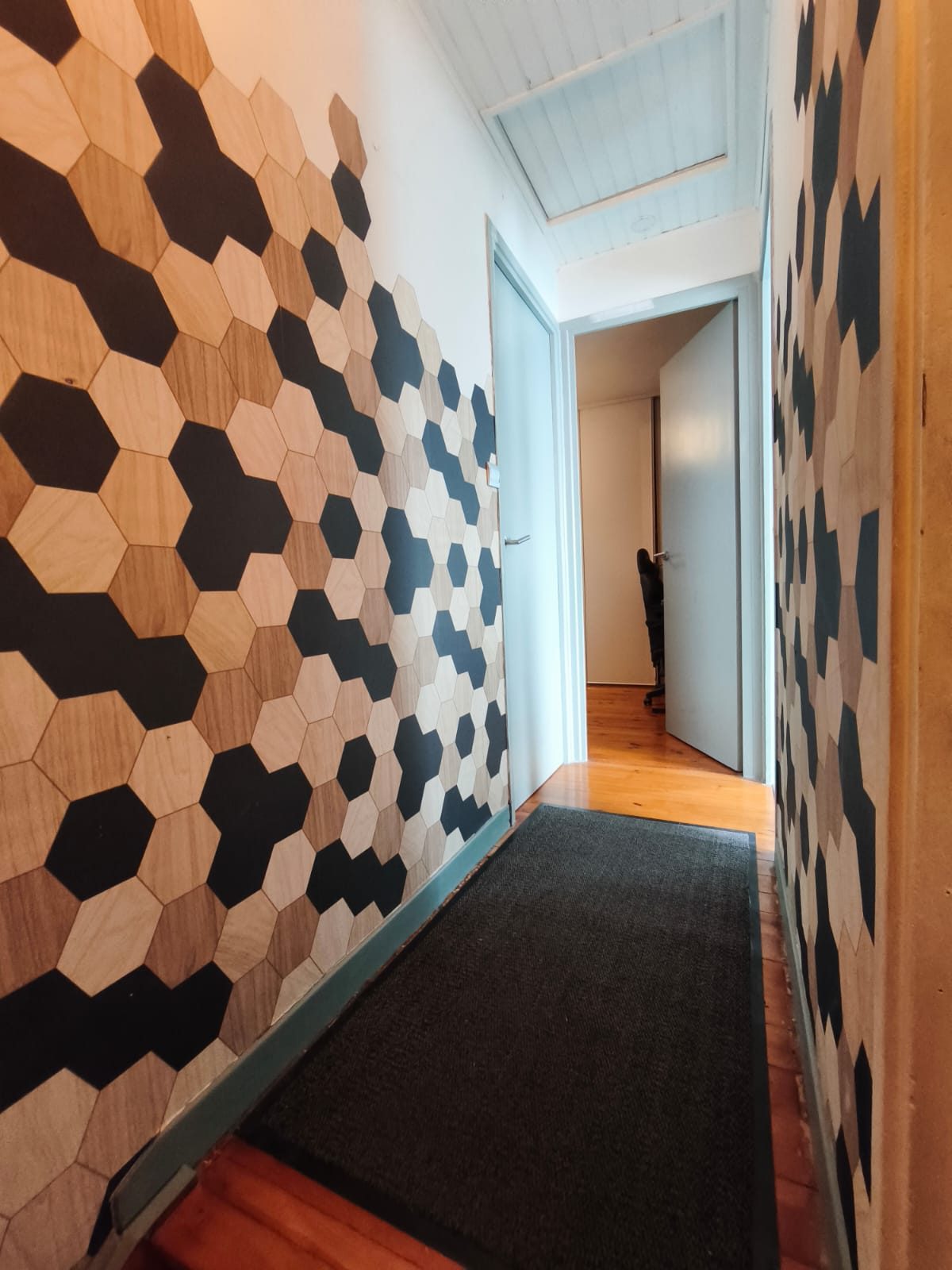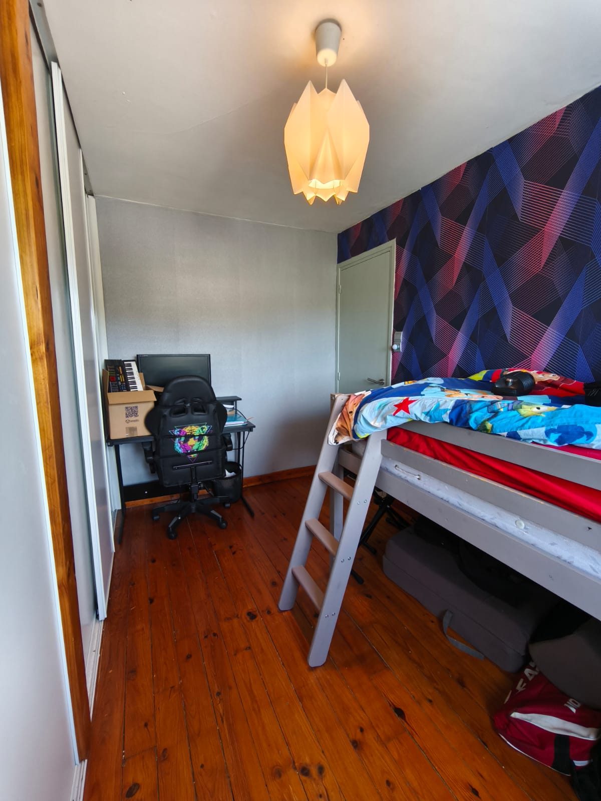 Un pallier dessert 3 chambres disposant d'un espace de rangement.