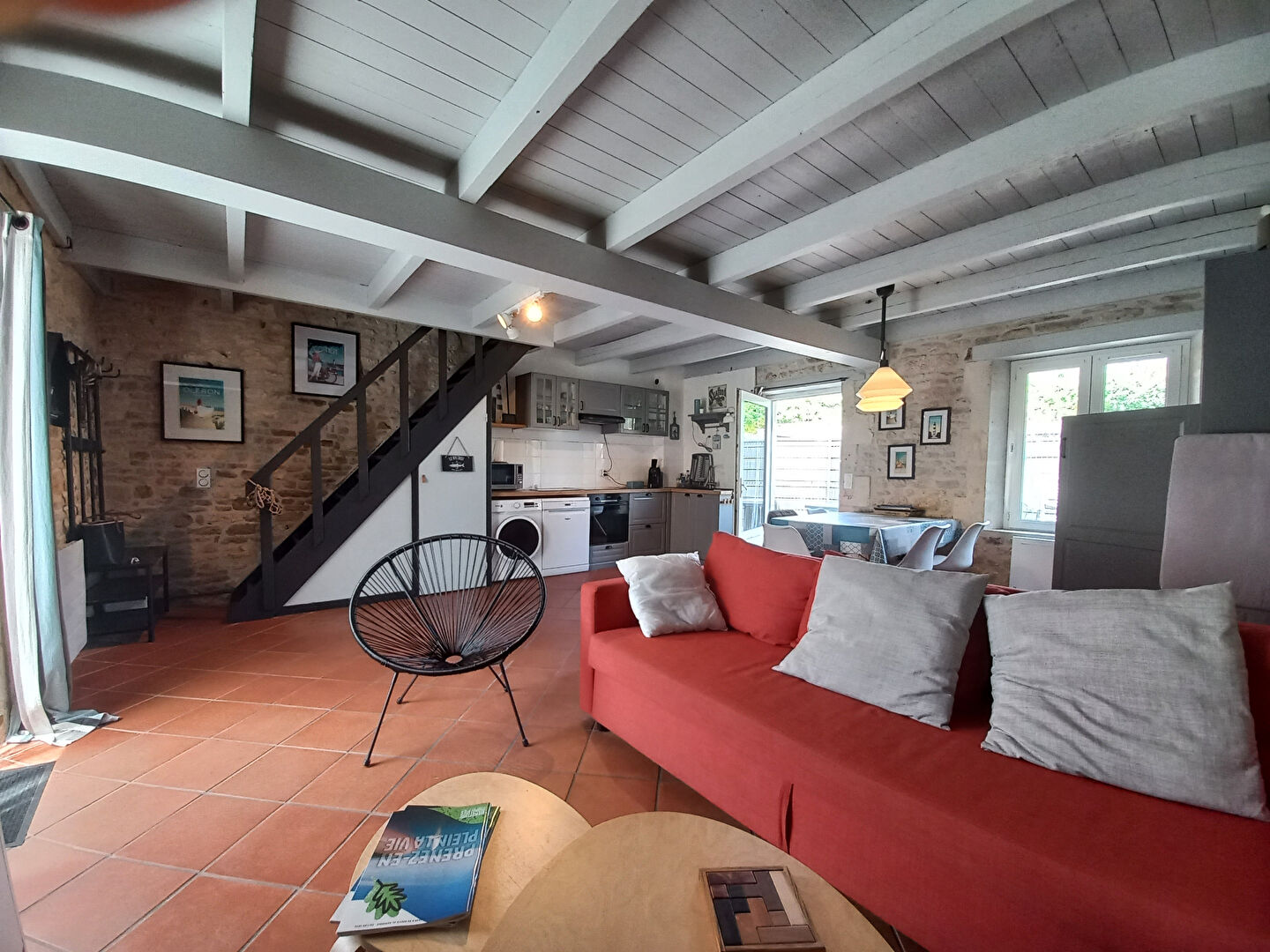 À 200 mètres des commerces, charmante maison en pierre d'environ 64 m² habitables offrant un séjour avec espace cuisine.