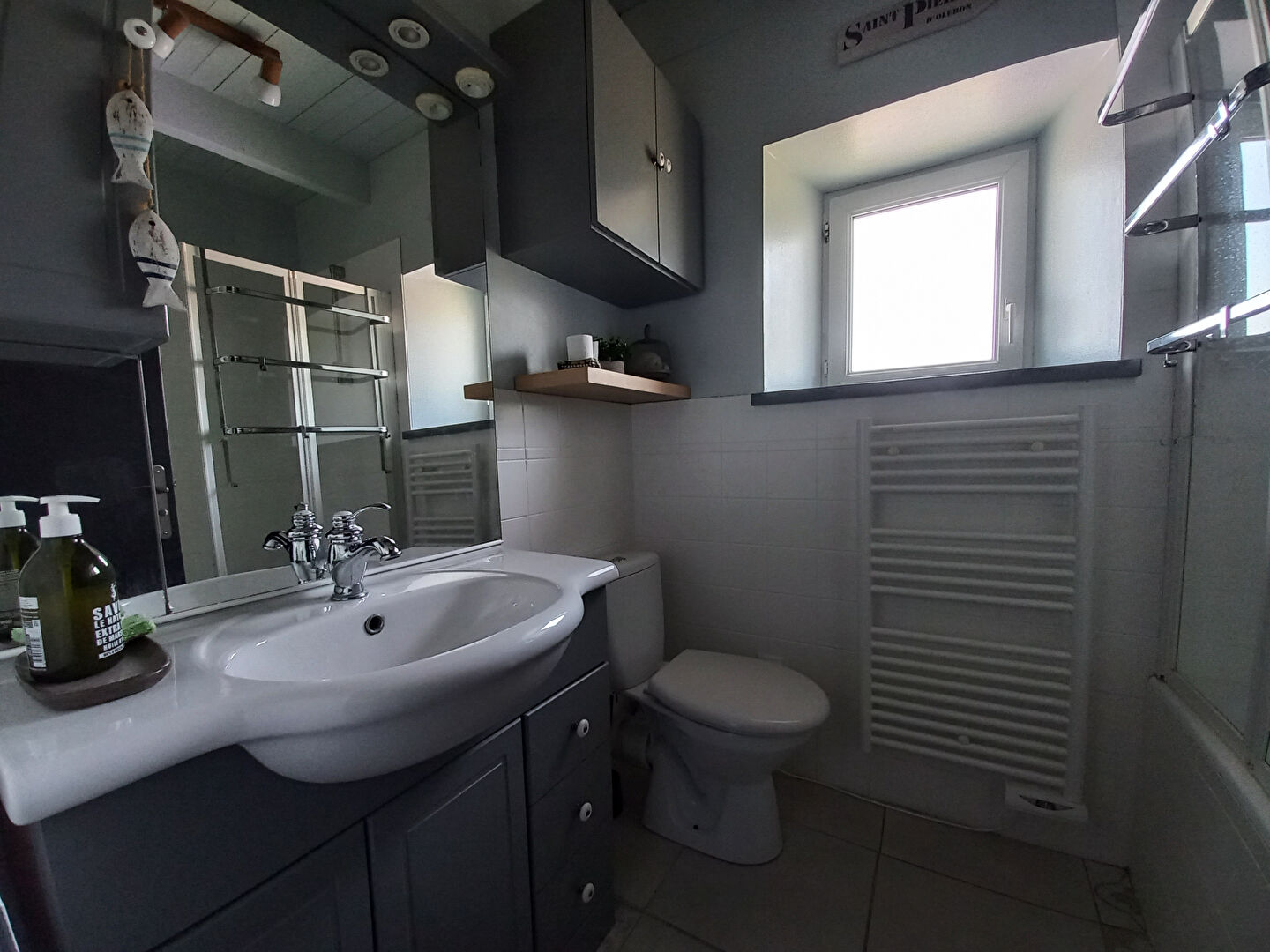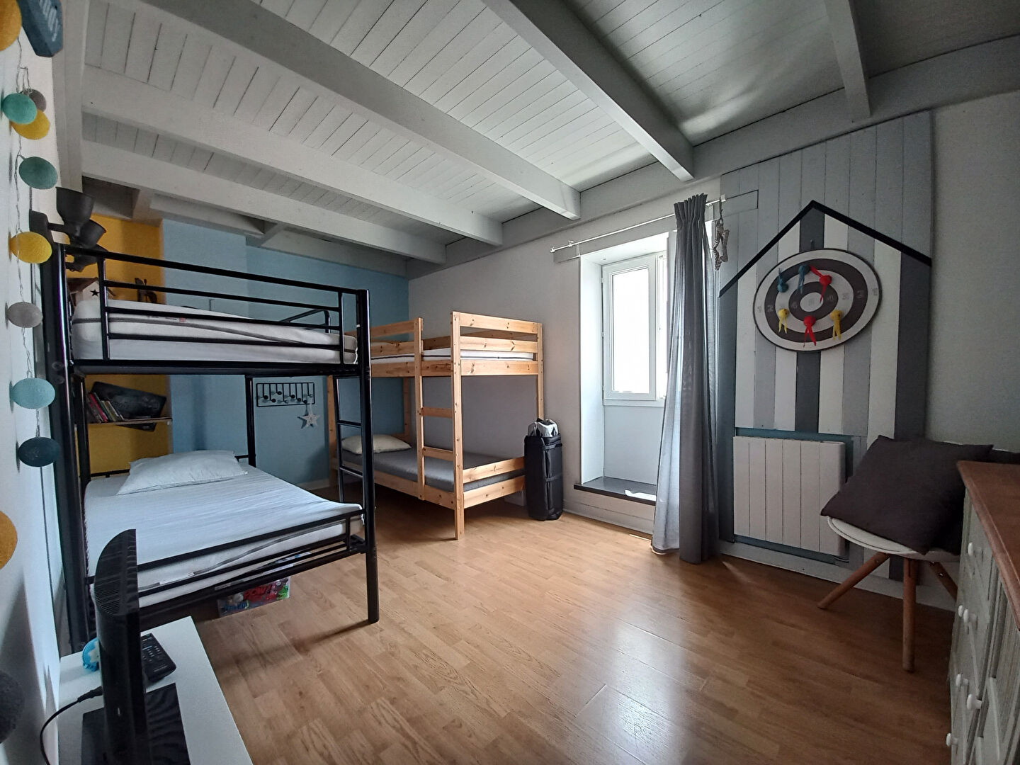 À l'étage deux chambres, une salle de bains avec wc.