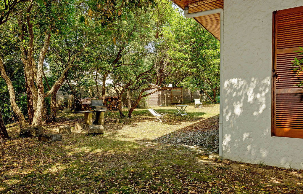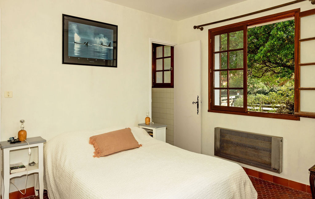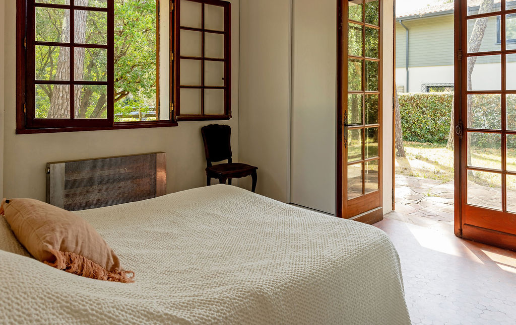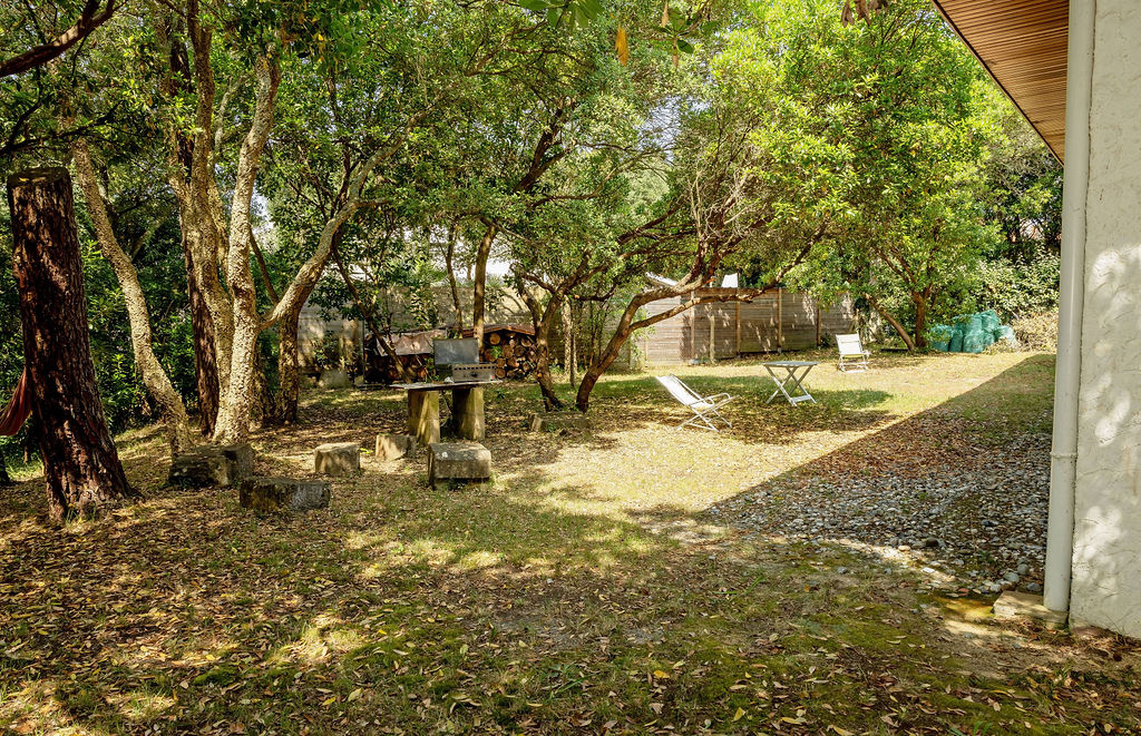 Une terrasse couverte à l'abri des regards donne sur le jardin pour profiter de l'extérieur en toute saison. Un garage avec un espace buanderie et une douche pour les retours de plage complètent l'ensemble.