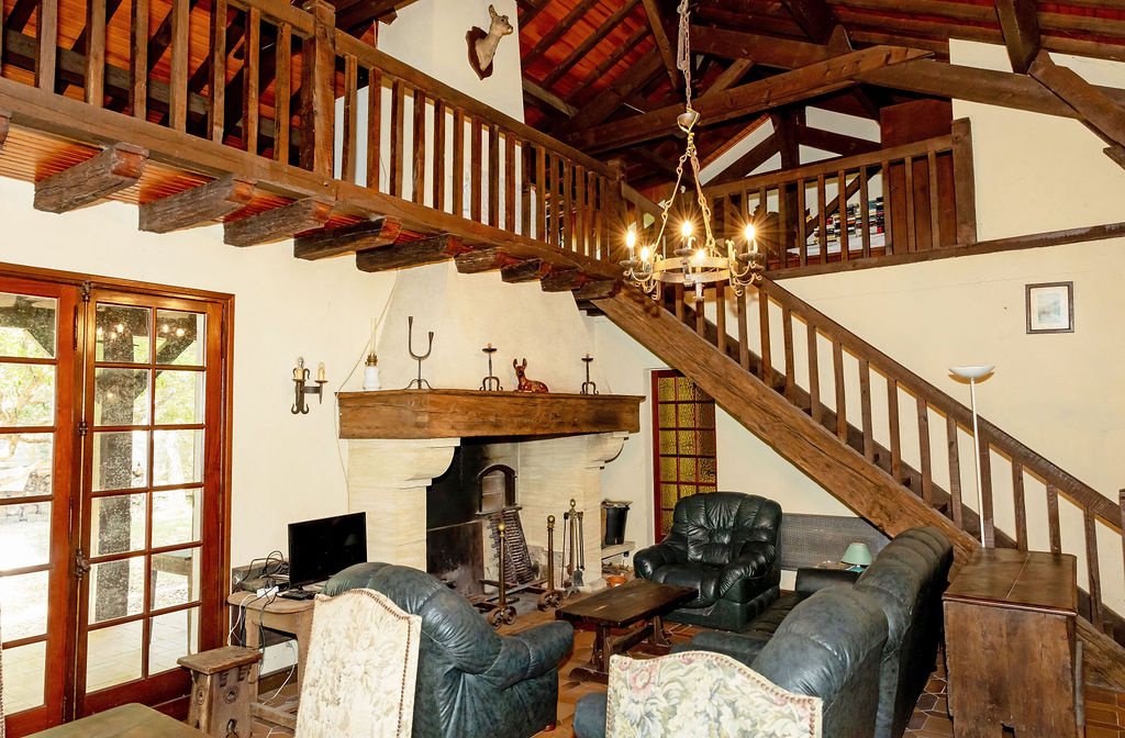 Le rez-de-chaussée se compose d'un grand hall d'entrée, une cuisine indépendante, un large séjour avec cheminée, charpente apparente sous une belle hauteur sous plafond, quatre chambres dont deux avec point d'eau, une salle de bains et un toilette.