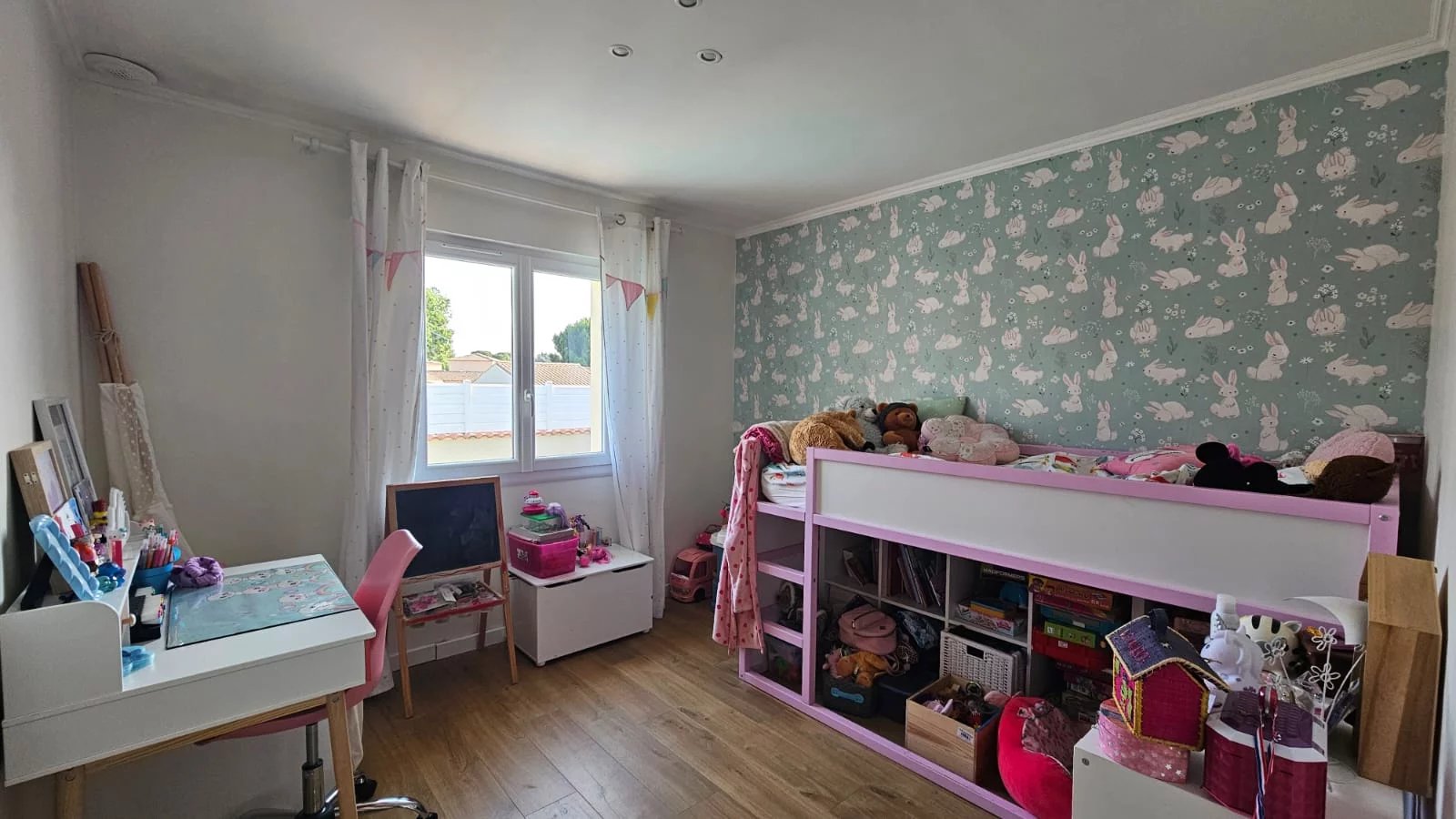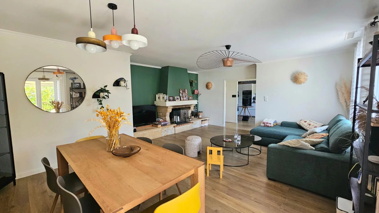 Elle est confortablement agencée et bénéficie d'une belle luminosité. Elle est composée d'un hall d'entrée avec placards aménagés sur mesure, d'une cuisine indépendante aménagée et équipée, d'une pièce de vie avec cheminée à foyer ouvert, d'un dégagement, de 3 chambres, d'une salle d'eau ajourée (avec baignoire et douche), de toilettes indépendants ajourés et d'un dressing aménagé.