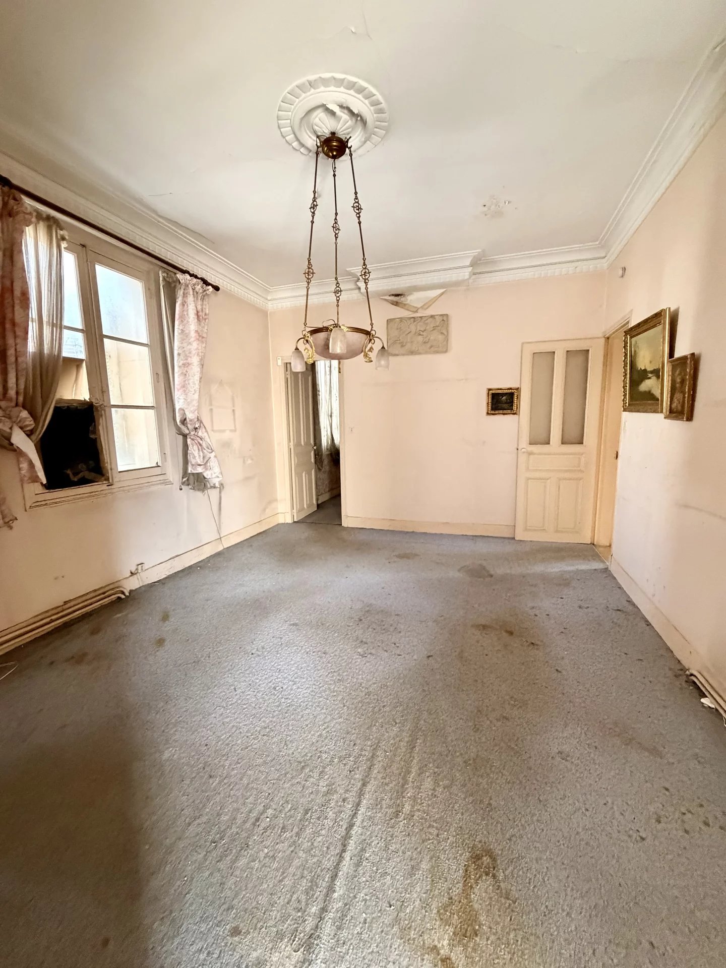 Dès l’entrée, les volumes s’expriment avec générosité. Sur environ 160 m² habitables, les hauts plafonds, les moulures d’époque et la lumière naturelle qui traverse chaque pièce créent une atmosphère à la fois élégante et chaleureuse. On imagine aisément une vie de famille animée, des moments de convivialité dans le grand séjour, ou encore un salon plus intimiste propice à la détente.