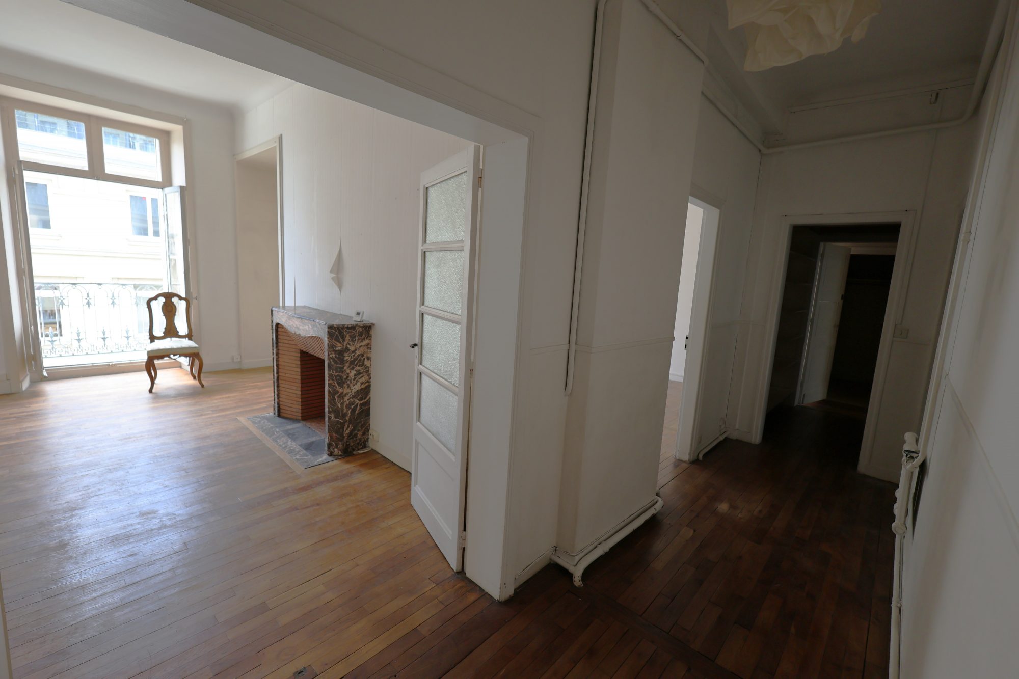 RENNES Centre ville - Dans un bel immeuble en pierre de la fin du XIXeme, cet appartement de 118m² est situé au 3eme étage d'une copropriété bénéficiant d'un ascenseur. L'appartement qui nécessite une rénovation a cependant de beaux atouts: ces éléments d'origine tels que parquets, moulure et cheminée, une belle luminosité et un emplacement de 1er choix au coeur des commerces et à deux pas du métro et des bus de République.