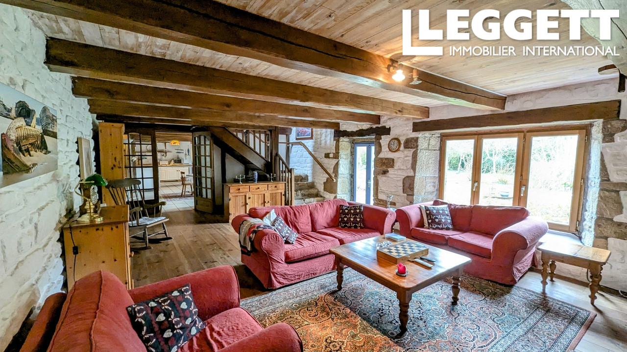 A35687JW56 - Située dans un hameau paisible, cette magnifique longère en pierre de 3 chambres allie à la perfection charme, espace et potentiel. Implantée sur un terrain de 13 481 m², la propriété comprend également une dépendance en pierre attenante à la maison, prête à être rénovée, un abri à bois, ainsi que de vastes espaces extérieurs permettant de profiter pleinement du cadre champêtre et paisible.