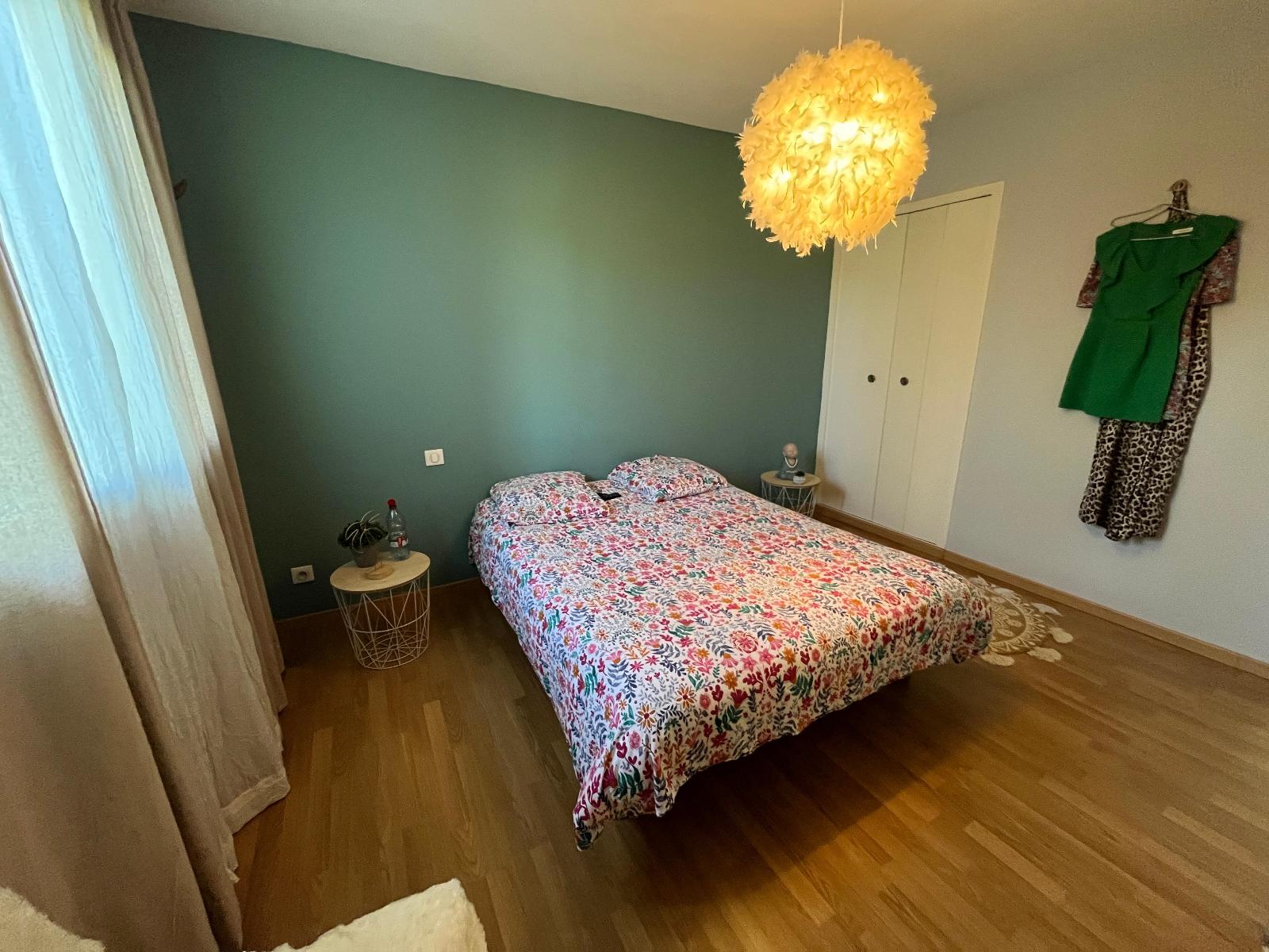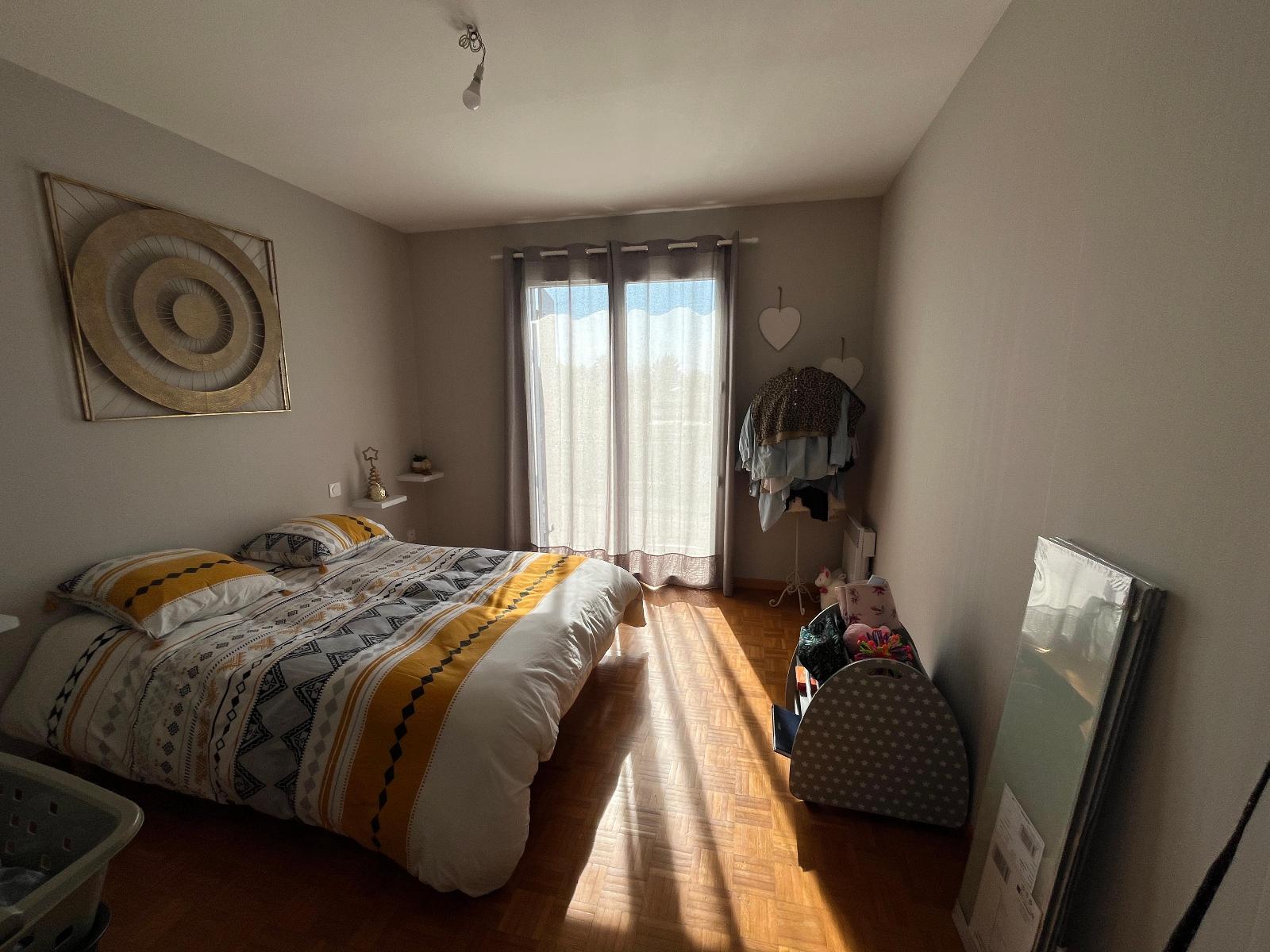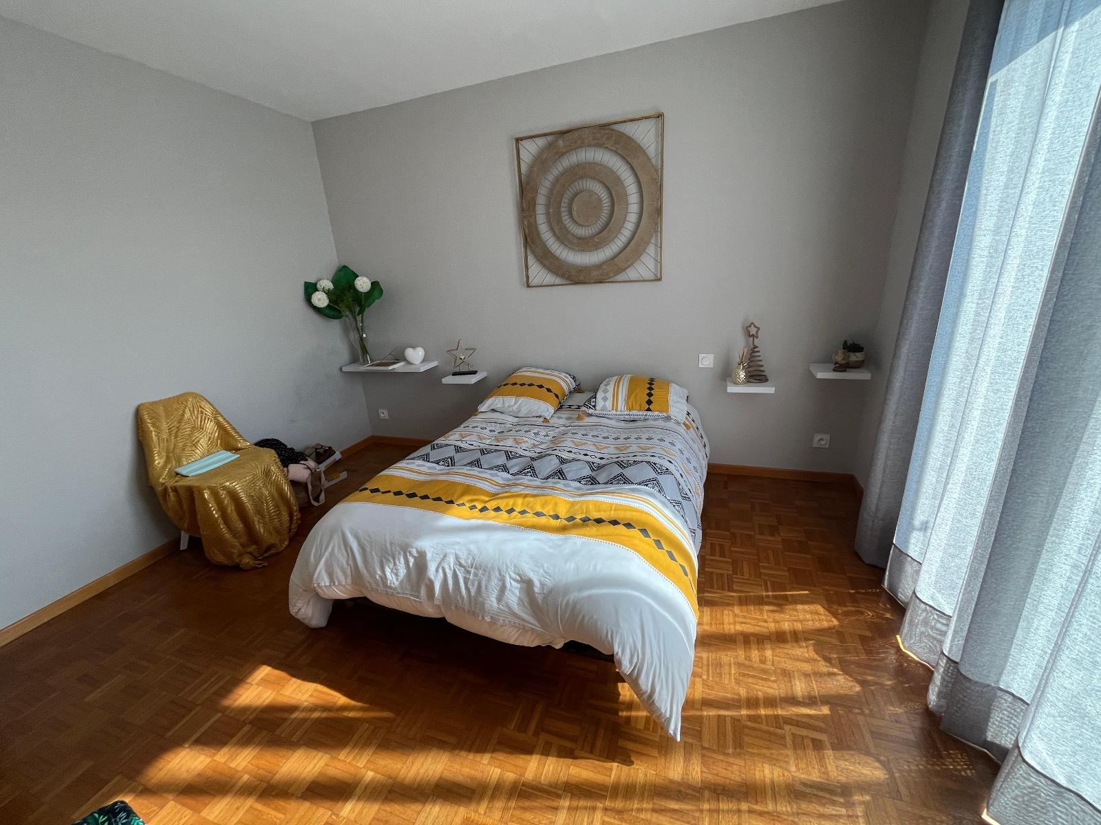 À l'étage, sur le demi palier, se trouvent deux chambres : l'une avec un balcon privatif, l'autre avec un placard de rangement. Une salle de bains vient compléter ce demi niveau.