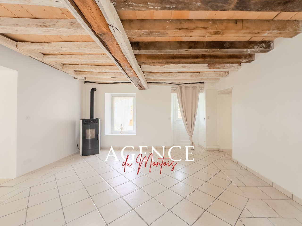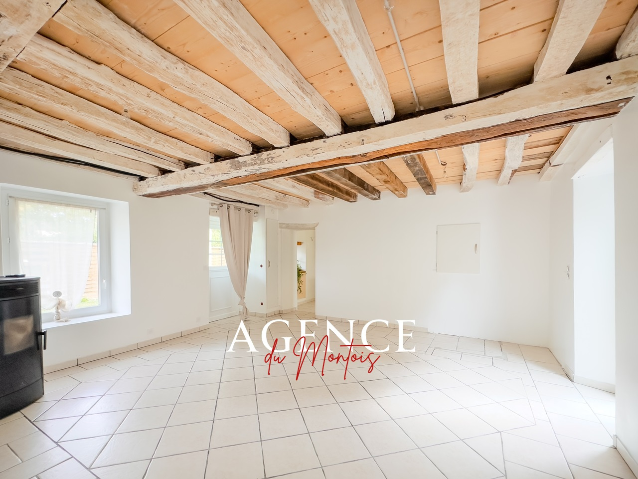 entrée, séjour 31 m2 (poêle à pellets), cuisine aménagée, couloir, chambre, salle de bains, wc, pièce pour futur wc, buanderie,