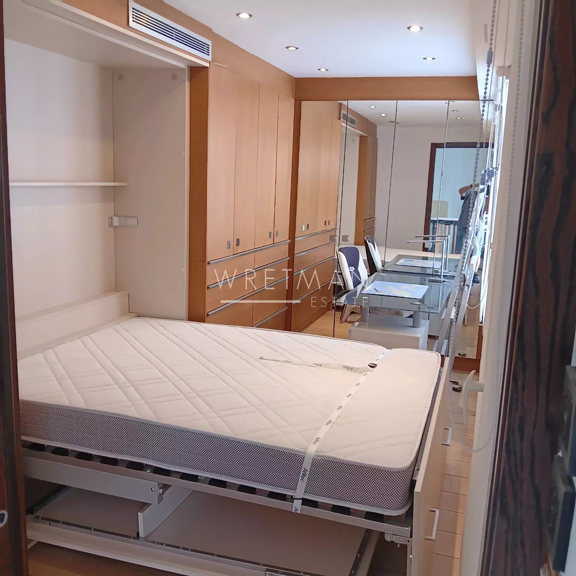 Il se compose d’un hall d’entrée, d’une salle à manger/séjour de 24 m², d’une cuisine indépendante avec équipements de haute qualités, une belle chambre avec parquet, une dressing avec un lit escamotable, d’une salle d’eau avec placard, et de toilettes séparées.