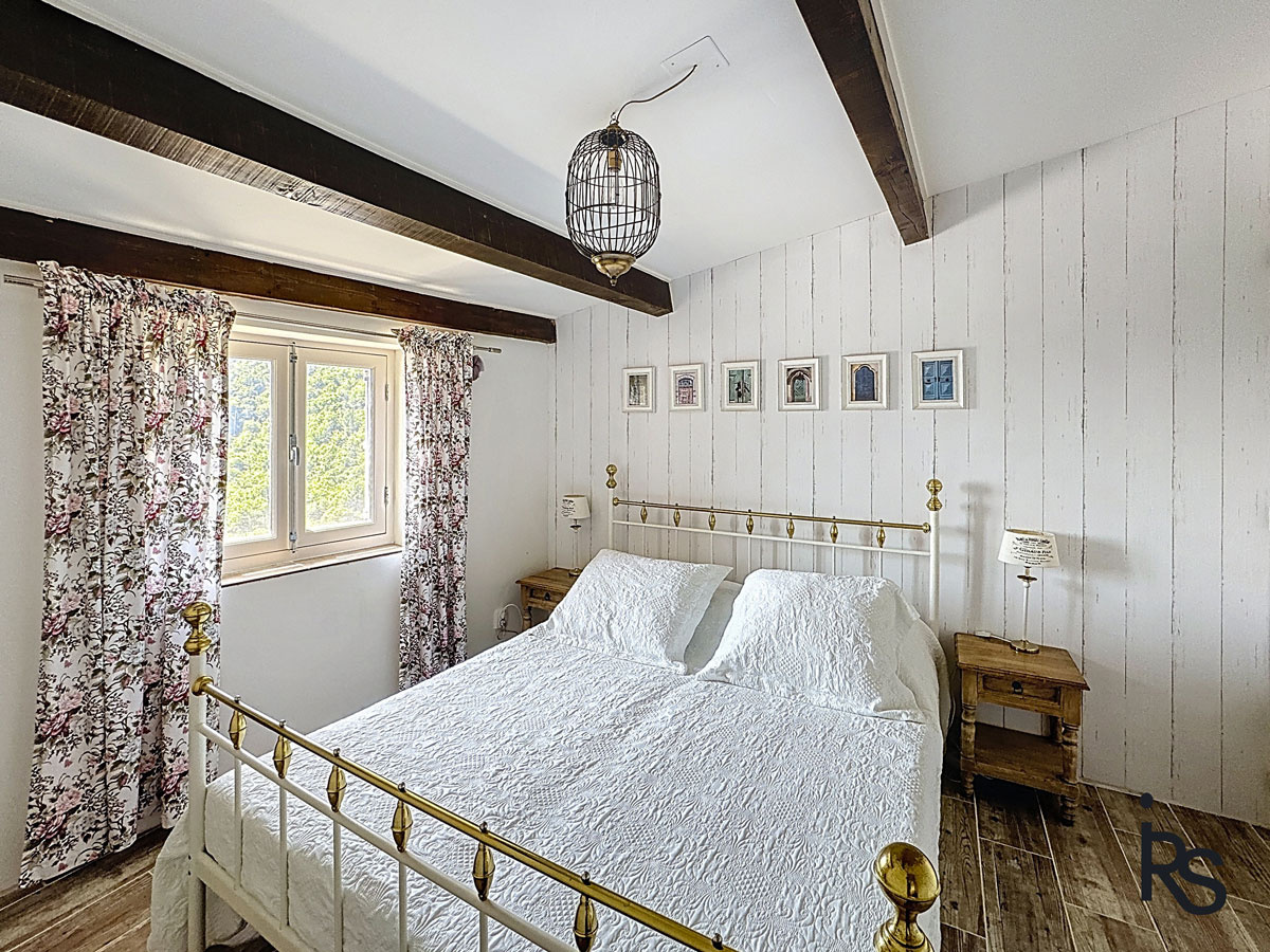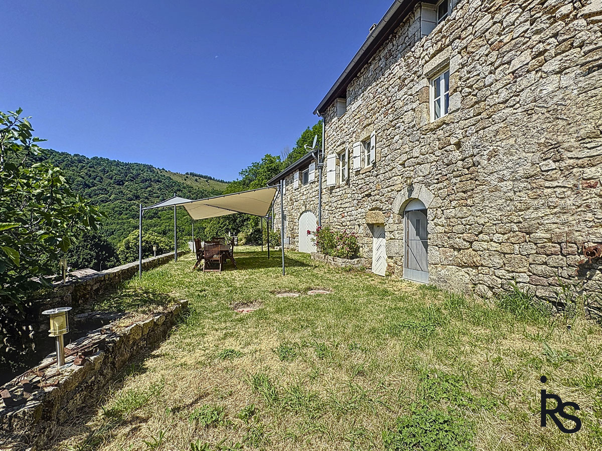Avec un vue splendide, une maison en pierre de 145 m2 avec et 1,4 ha de terrain attenant, un garage et une cave. Elle est composée d'une partie principale de 100 m2 comprenant une salle à manger-cuisine, un salon, deux chambres, une salle d'eau et un W.C, et d'un logement annexe de 45 m2 comprenant un salon avec coin-cuisine, une chambre, une salle d'eau avec W.C. et une buanderie. Attenant à la maison, un garage.Fosse septique à mettre aux normes. Absence de moyen de chauffage. Quelques travaux de second oeuvre sont à terminer. Baignade dans une belle rivière à 5 minutes.