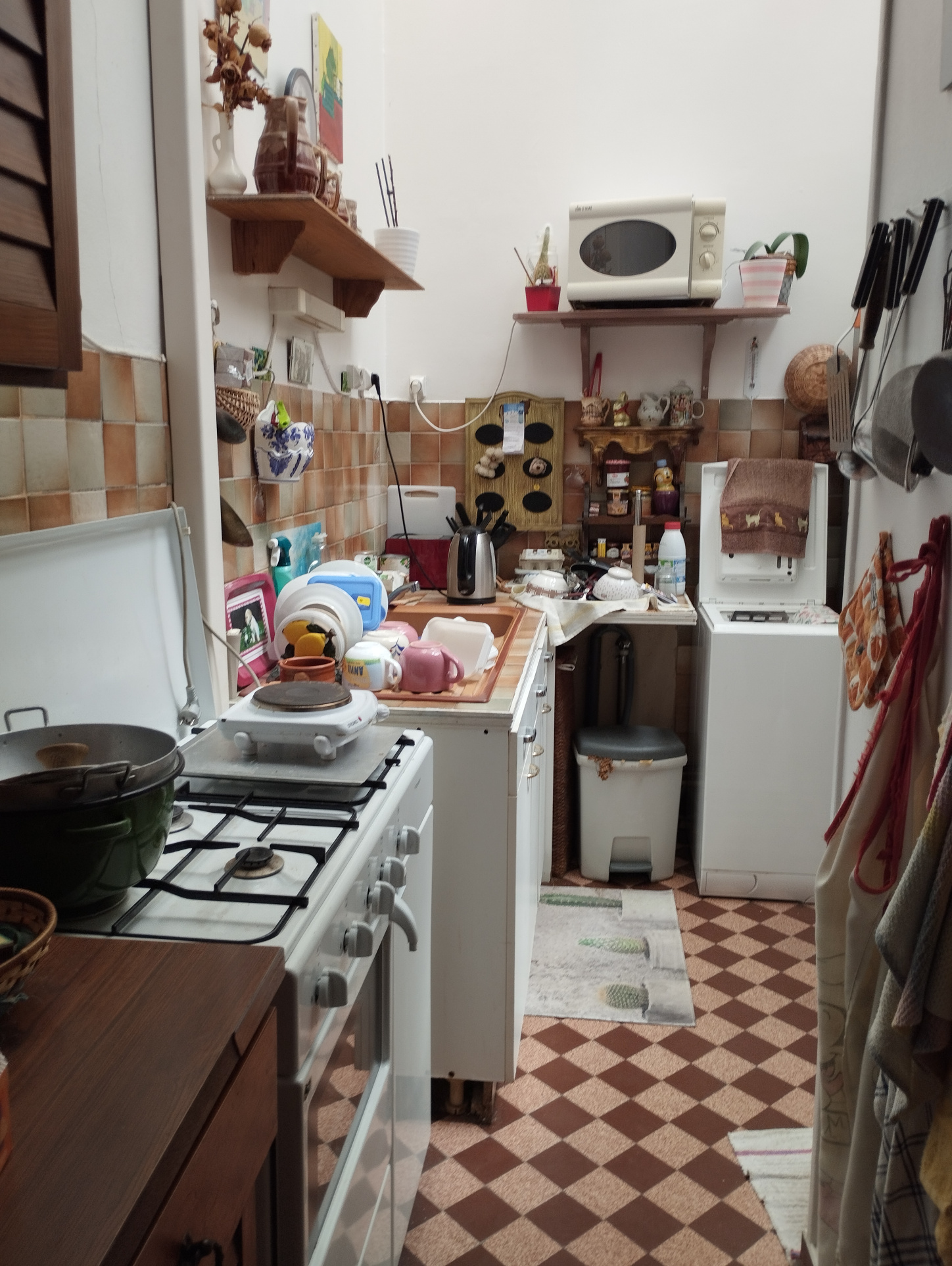 couloir desservant un salon-séjour, cuisine, salle d'eau-wc, chaufferie, cave