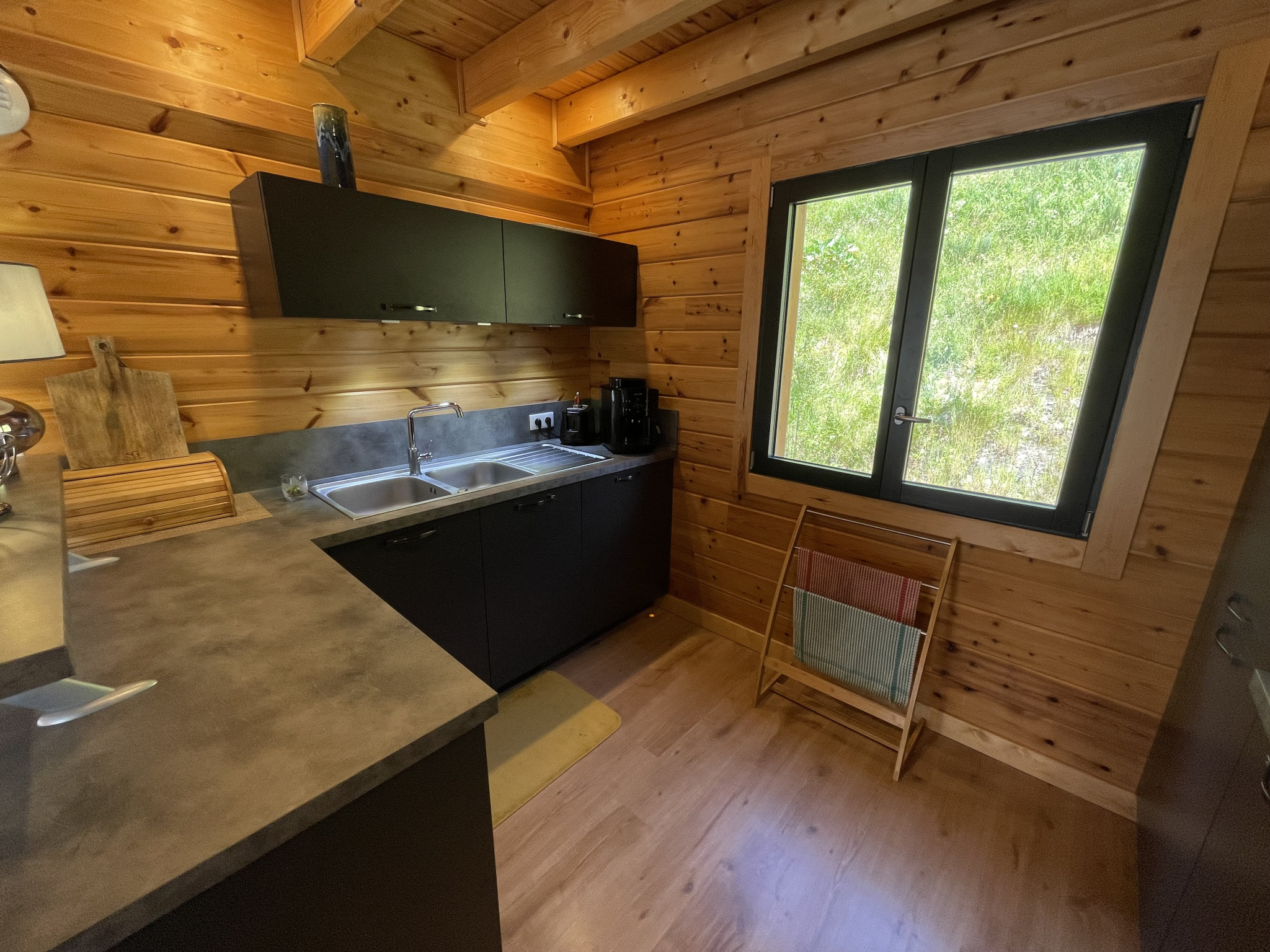 Ce chalet est composé en rez-de-chaussé d'une s'alle d'eau (douche et baignoire), deux chambres et WC indépendants.