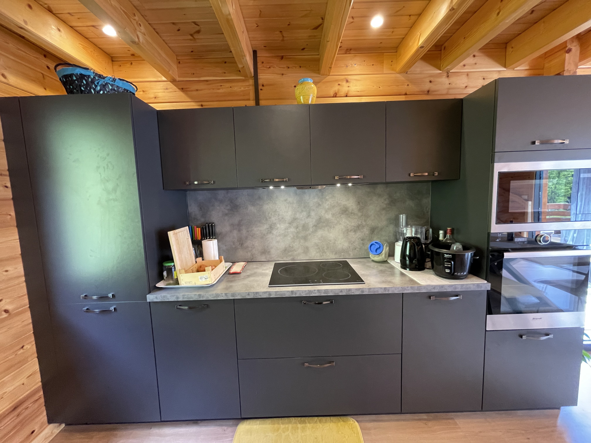 Au premier, une grande piece de de vie agréable et lumineuse équipée d'une cuisine americaine et buandrie.