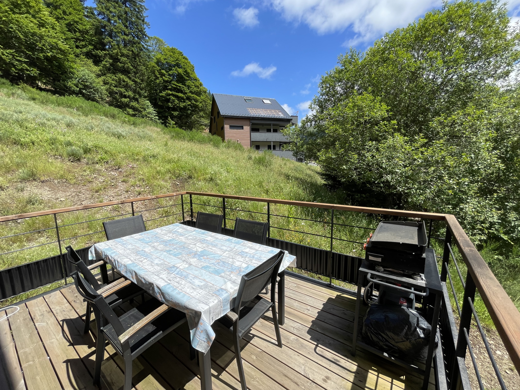 Magnifique chalet de construction finlandaises de 123 m2 édifié sur trois niveaux avec deux terrasses et place de parking extérieur.