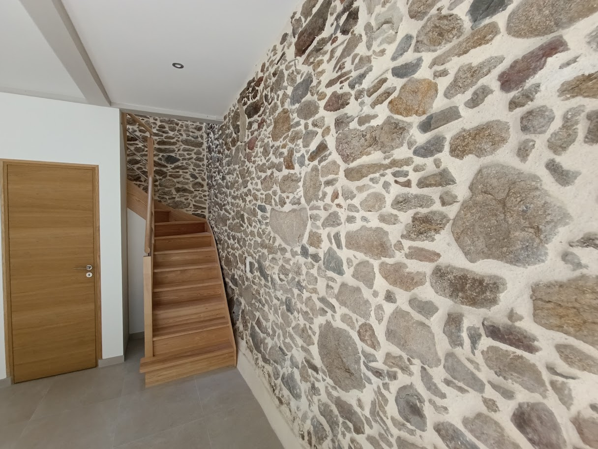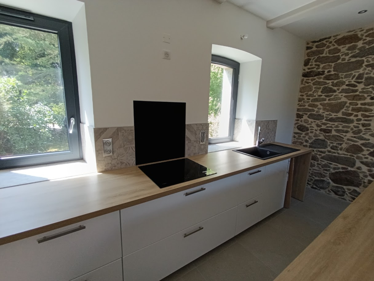 Rénovation totale de très haute qualité pour cette maison de caractère qui dispose d'une belle pièce de vie avec cuisine ouverte neuve, un salon proche d'un poêle à bois haut de gamme. WC avec rangements. Le tout traversant avec accès jardin sud.