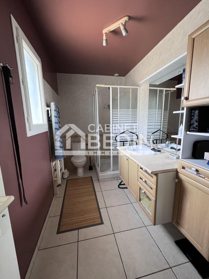 Plain-pied contemporain de 2000 au calme en seconde ligne, comprenant un grand espace de stationnement sur l'avant avec garage de 20m2 et abri de jardin sur grande parcelle clôturée avec portail électrique. La maison comprend : une entrée avec placards s'ouvrant sur séjour orienté sud-ouest de 40m2, une cuisine de 14m2 et son cellier.