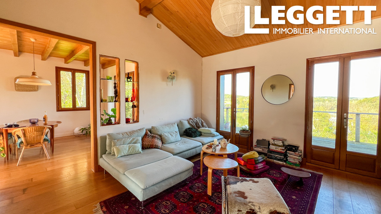 A37948GJP24 - Une occasion rare d'acquérir une maison d'architecte unique, lumineuse, spacieuse et confortable, offrant une vue imprenable sur le Lac de L'Escourou. Toutes les pièces donnent accès à la terrasse et bénéficient d'une vue panoramique sur le lac.