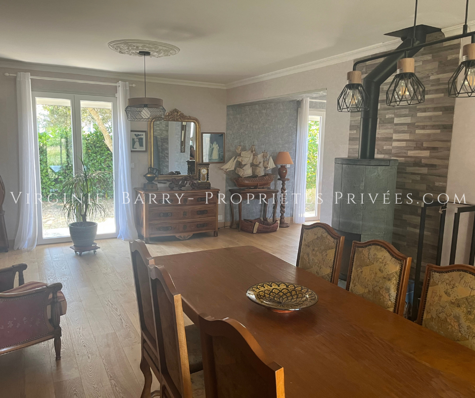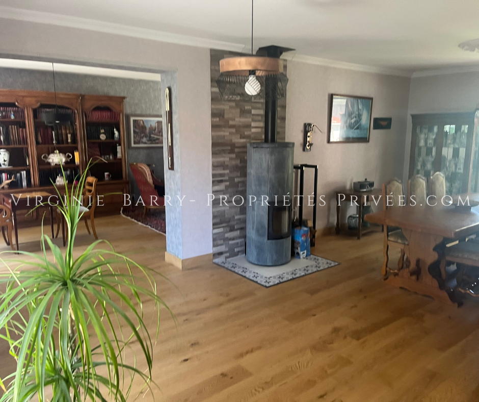 Dès l'entrée, vous découvrirez un espace accueillant menant à une cuisine indépendante aménagée et équipée, avec coin repas.le vaste séjour/salle à manger traversant, baigné de lumière naturelle, offre un cadre chaleureux avec son poele à bois et s'ouvre sur une véranda de 21 m² (hors surface habitable), parfaite pour profiter de la vue du jardin toute l'année ! La maison comprend 4 chambres, un bureau, une salle d'eau avec WC, un WC séparé, ainsi qu'une buanderie.