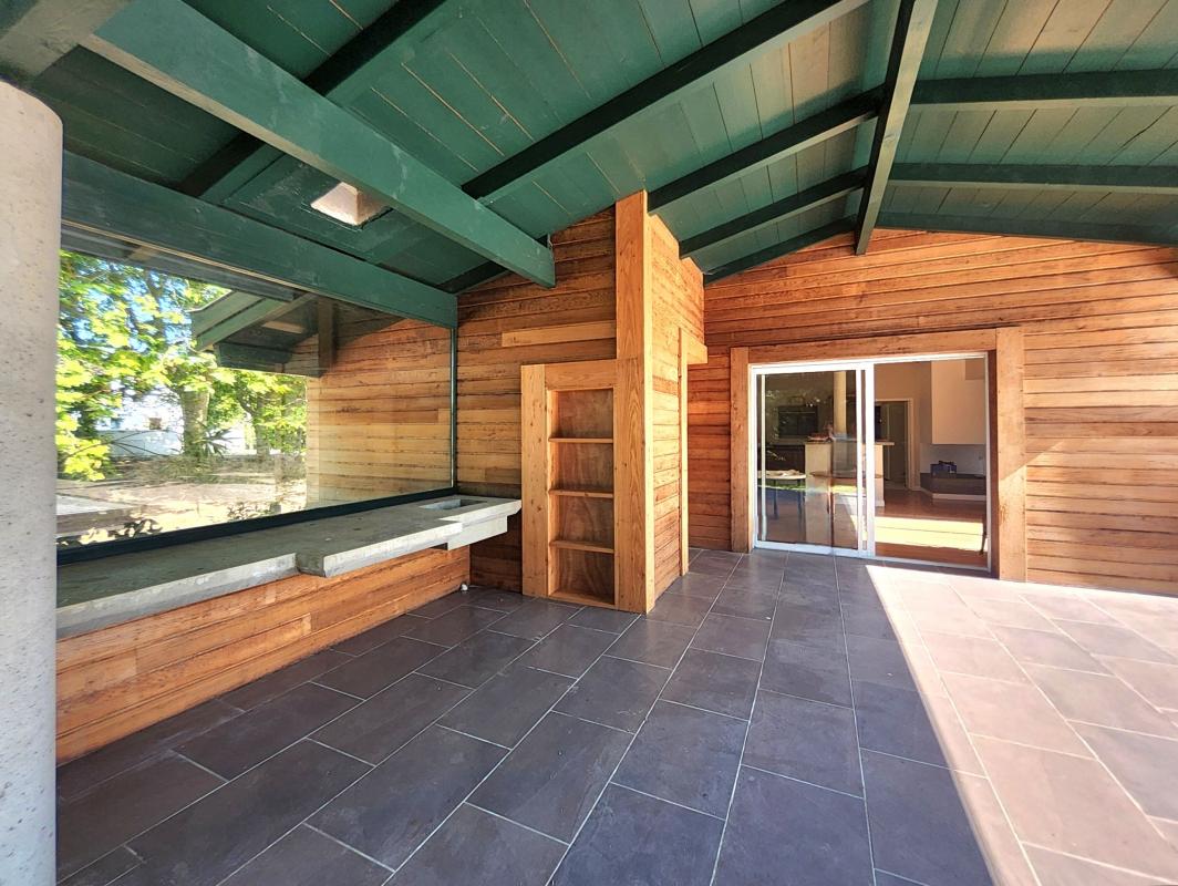 La vaste cuisine conviviale, équipée est ouverte sur la salle à manger ( vaste arrière-cuisine attenante ) parfaitement orientée Sud et Est donnant accès à une vaste terrasse couverte avec une cuisine d'été.