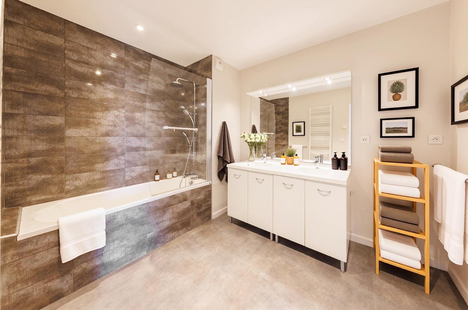 L'espace nuit se compose de deux chambres agréables, d'une salle de bains et de WC séparés, pensés pour plus de praticité.