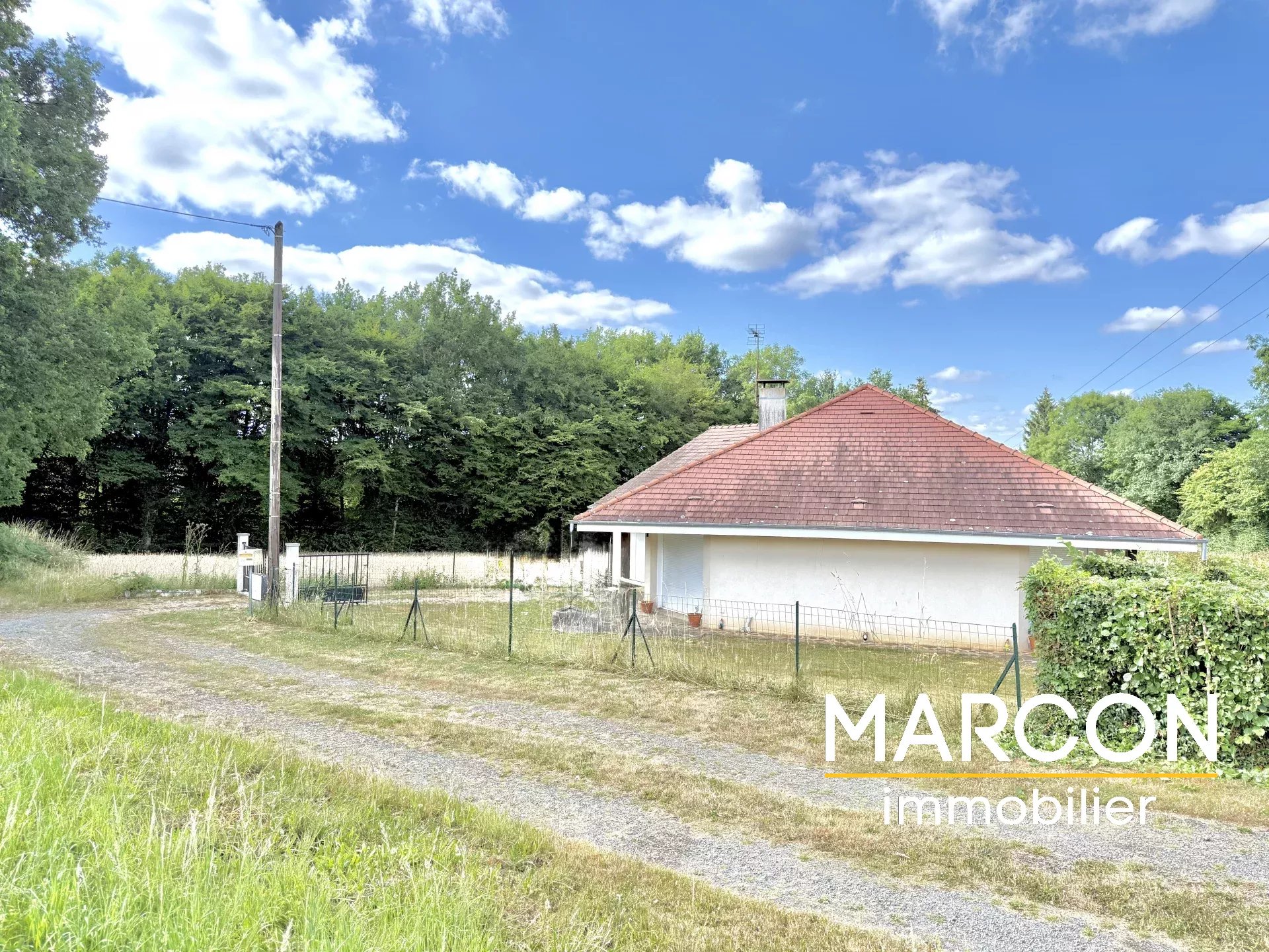 REF 89024. Entre BONNAT et AIGURANDE, au bout d'un chemin. Charmante maison de campagne de plain-pied de 85?m² habitable, idéale pour un couple ou une petite famille composée d'une entrée, d'un WC, d'un espace lingerie, d'une cuisine aménagée ouverte un beau séjour de 39 m² avec poêle à granulés, couloir, deux chambres avec rangements intégrés et une salle d’eau moderne avec WC. Garage attenant avec grenier de stockage. Le tout sur un terrain de 1 040 m² avec terrasse couverte, idéal pour profiter d’un quotidien paisible en Creuse.