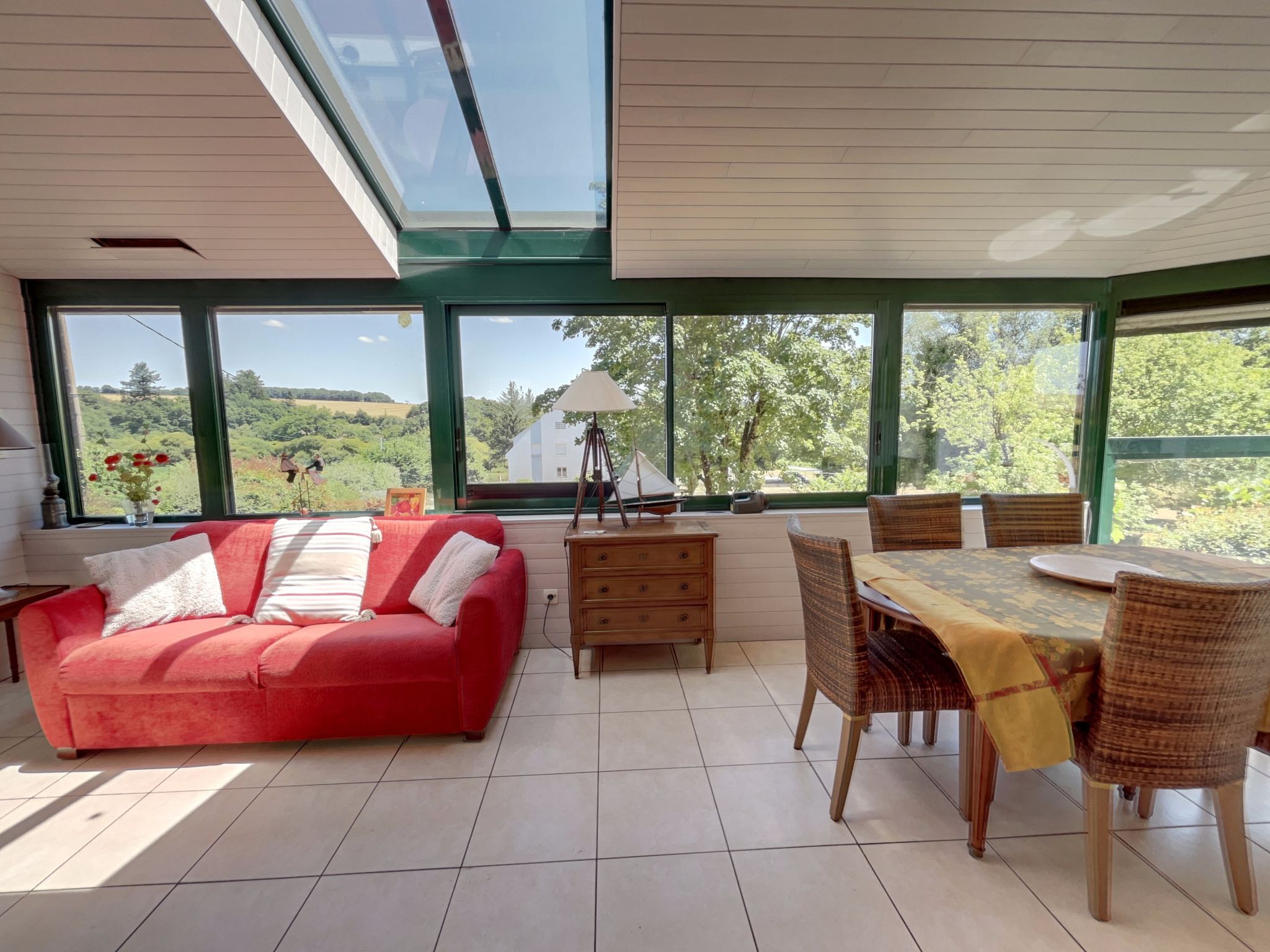 D'une entrée, d'une spacieuse pièce de vie avec salon, salle à manger et cheminée d'une cuisine indépendante aménagée et équipée, d'une véranda lumineuse faisant office de seconde pièce de vie, d'une belle chambre, d'une salle de bain avec baignoire et douche, et d'un WC séparé.