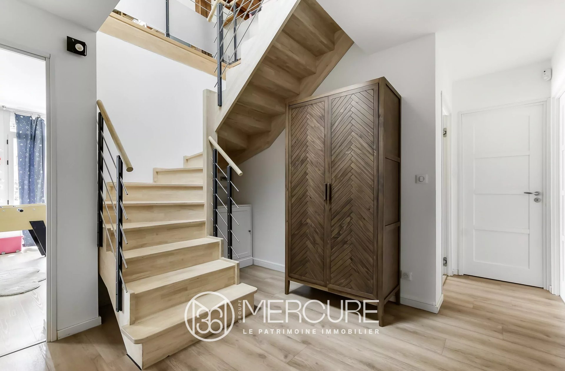 Le dernier étage climatisé, rénové en salle de jeux, de lecture et de musique, est un espace en supplément des 230 m² habitables de la maison.