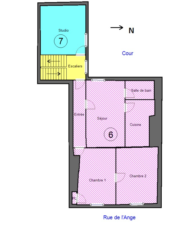Situés dans un immeuble ancien, ces deux lots donnent sur une cour intérieure. Ils offrent une surface respective de 12,01 m2 (lot no5) et 11,76 m2 (lot no7), soit une surface totale d'environ 23,77 m2.