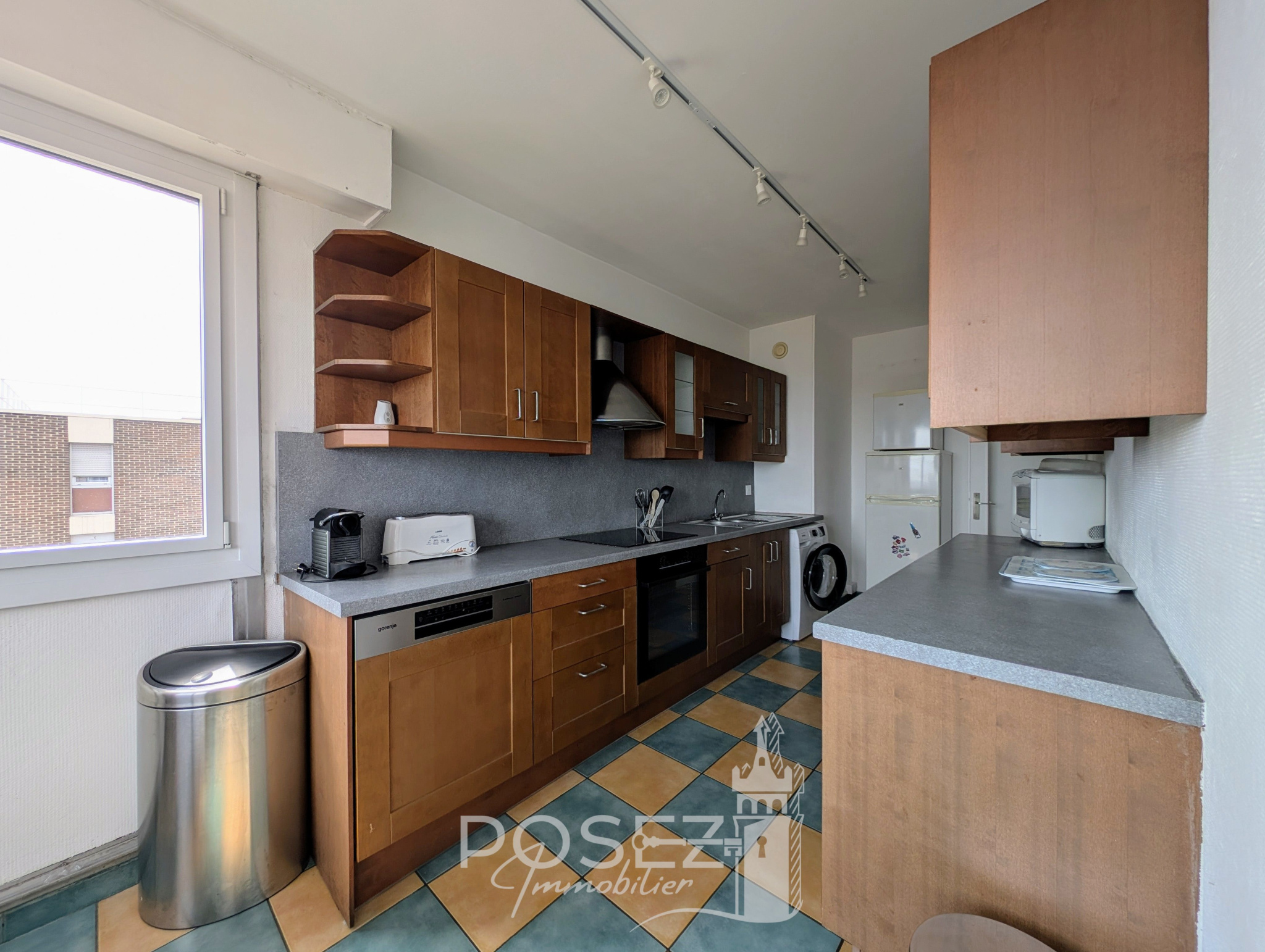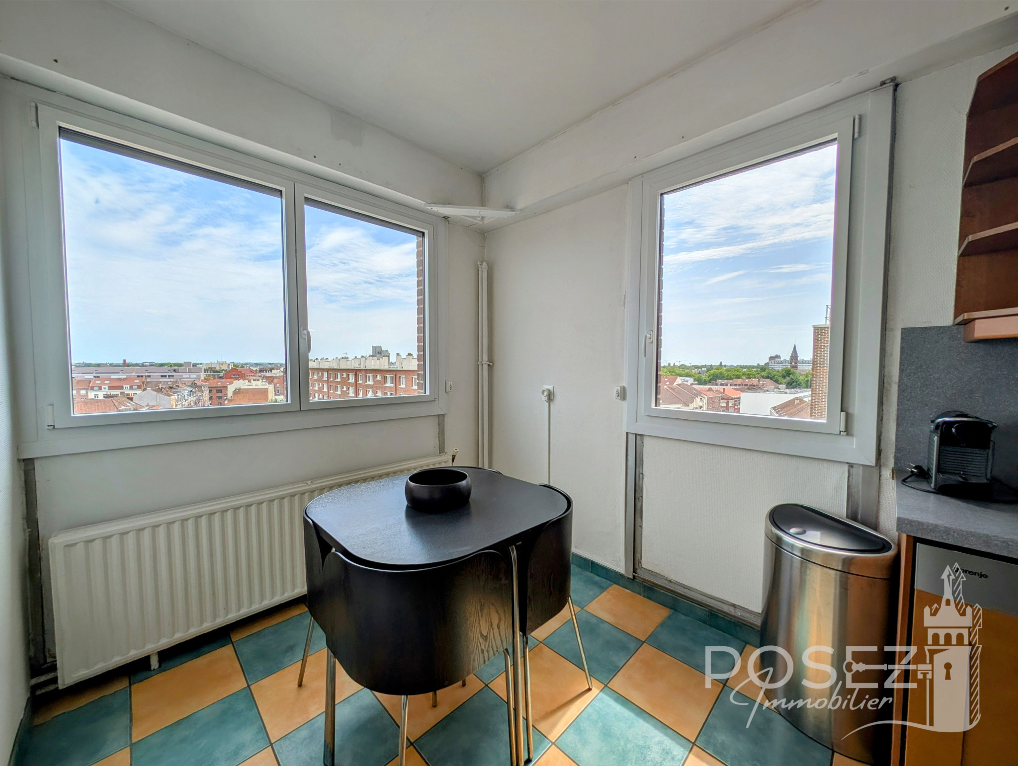 Superbe T3 traversant au 8e et dernier étage de la résidence, offrant une vue magnifique, aérée et dégagée à 180 degrés sur de nombreux monuments Lillois.
