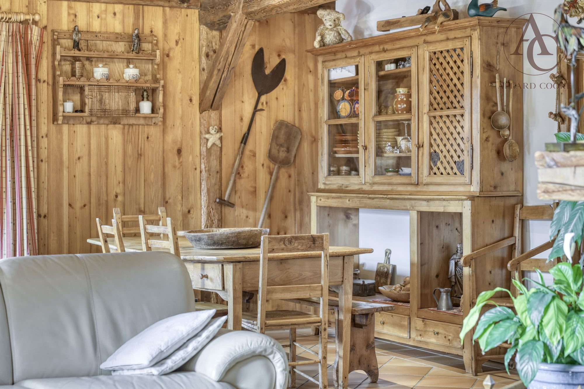 Superbe chalet traditionnel en vieux bois, situé en bordure des pistes de ski du Jaillet et à 10 minutes à pied du centre du village. Il bénéficie d'une magnifique vue dégagée sur la chaîne du Mont-joly, le Mont-d'Arbois et Rochebrune et d'un bon ensoleillement. D'une surface habitable de 206,19 m² + 30,26 m² inférieurs à 1,80 m + 30 m² de garage + 15 m² de cave, ce chalet sur trois niveaux comprend un beau séjour sous toiture avec cheminée et balcon Sud, une cuisine indépendante équipée et terrasse Sud-Ouest, trois chambres avec bain ou douche, un 2 pièces indépendant avec terrasse Sud-Ouest, une cave, une buanderie, des greniers, un garage et trois parkings extérieurs. L'ensemble établi sur un terrain de 1 405 m².