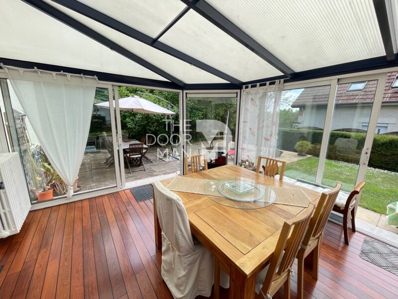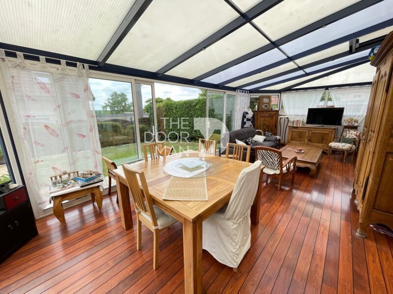 Une grande véranda lumineuse avec accès direct au jardin, à la cuisine et au salon - Idéal en toutes saisons pour recevoir ou pour des moments de détentes.