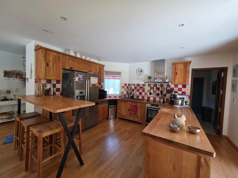 La pièce de vie spacieuse et lumineuse avec cuisine ouverte s'ouvre directement sur les terrasses et la piscine, créant un espace de vie convivial et fonctionnel. Elle comprend six chambres dont une suite parentale avec salle d'eau privative, une grande salle de jeux, deux salles de bain complémentaires, ainsi que trois WC.