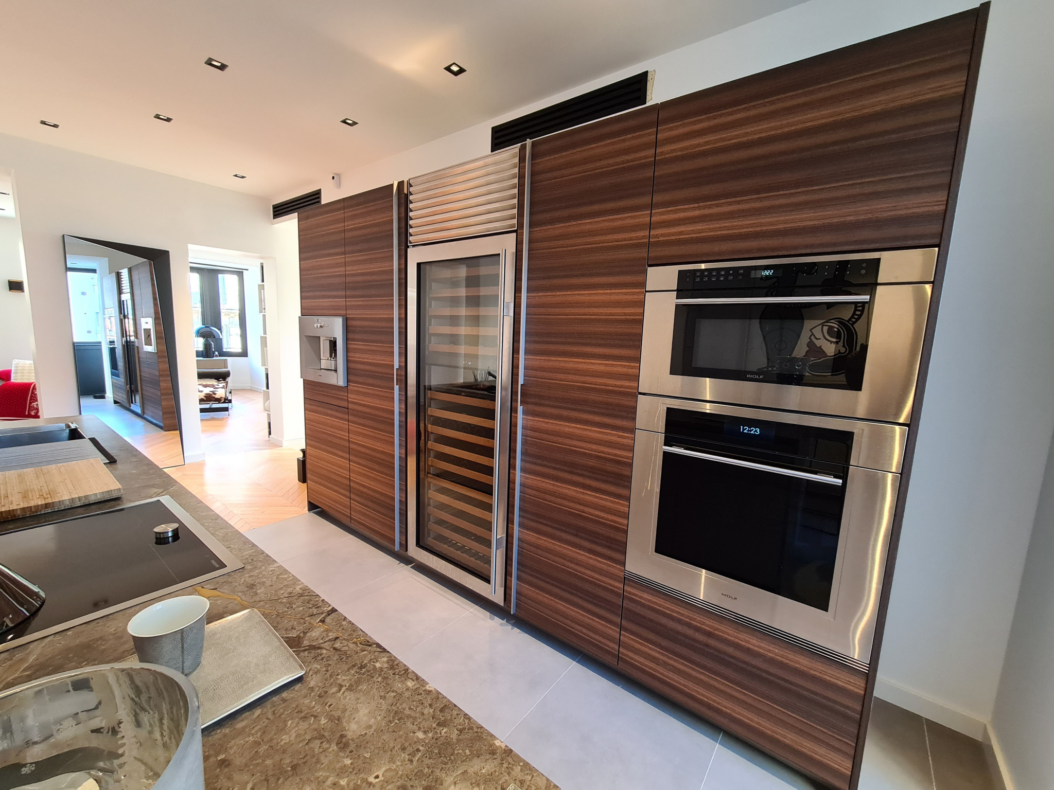 Vous profiterez d'un espace de vie de plus de 60 m2, avec un magnifique parquet en point de Hongrie, d'une cuisine indépendante haut de gamme entièrement équipée et aménagée, de deux grandes chambres avec dressings, d'une vaste salle d'eau avec douche à l'italienne et double vasque, d'un WC indépendant et d'une buanderie.