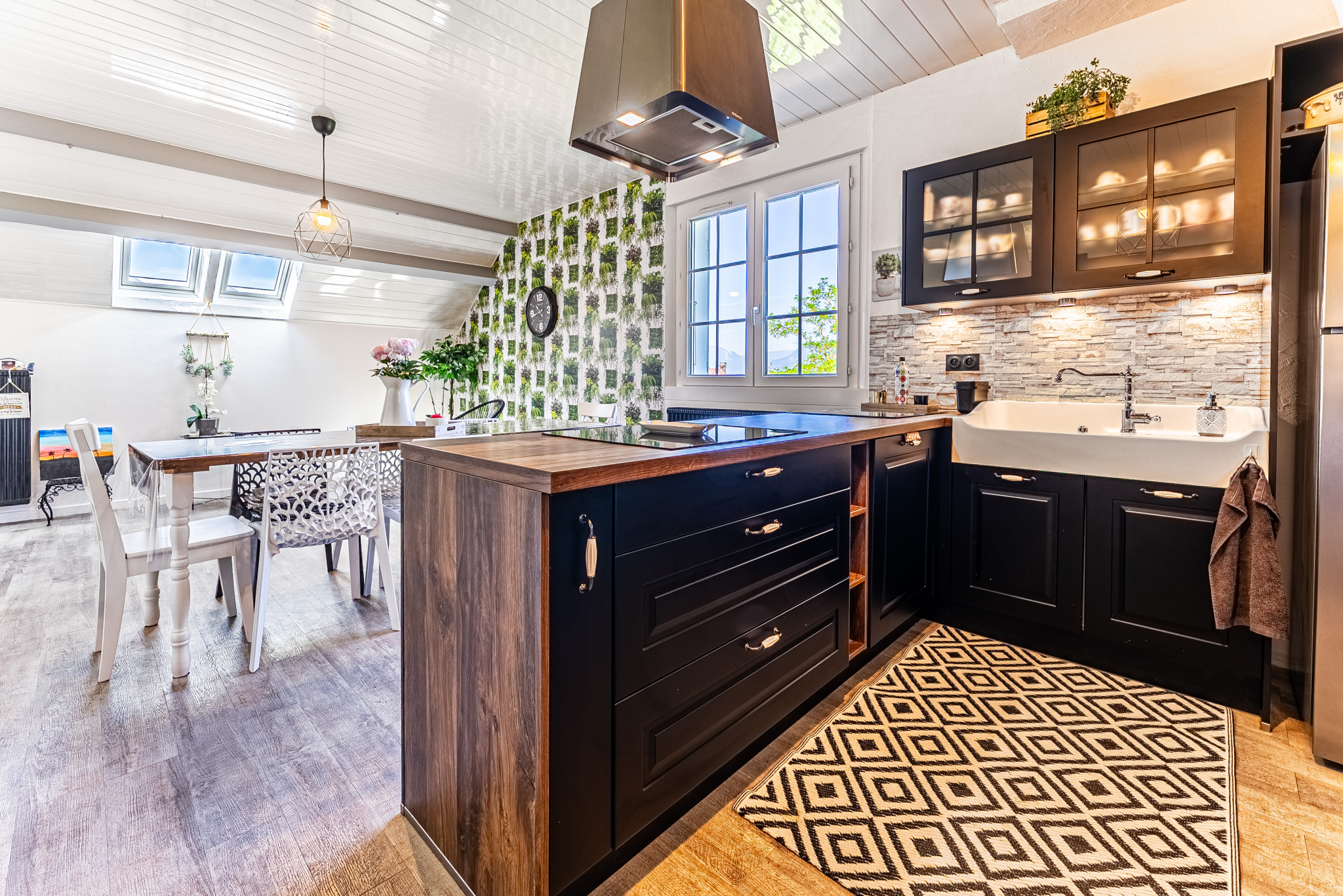 Situé dans un secteur très recherché, au coeur d'un environnement verdoyant et paisible pour les amoureux de nature et de tranquilité. Venez découvrir le charme de ce spacieux appartement de type T3 transformable T4/T5 de 119m2 carrez et 140m2 au sol, en dernier étage d'une maison découpée en 3 lots, entièrement rénovée avec beaucoup de goût. De très beaux volumes avec belles hauteurs sous plafond à la française. Ce bien rare dispose d'une pièce de vie lumineuse, d'un espace salon-salle à manger, d'une cuisine entièrement équipée et neuve avec arrière cuisine et buanderie. 2 chambres existantes, possibilité d'en créer 3 voir 4- salle de bains + salle d'eau avec vue panoramique sur les montagnes. De nombreux rangements- Des combes aménageable de 80m2 isolée - charpente en très bon état.Toutes les huisseries double vitrage, neuve avec moustiquaire intégrée.Climatisation. Sur un terrain de plus de 500m2 à usage exclusif, situé en contre bas de la maison avec sa cuisine d'été,toilette, terrasse carrelée, carport, possibilité d'aménager une piscine ou de construite un garage. En annexe 2 remises en sous-sol- Rénovation de qualité, prestations soignées, volumes généreux, pas de charge de copropriété et cadre bucolique font de ce bien un coup de coeur assuré. A très vite pour une visite