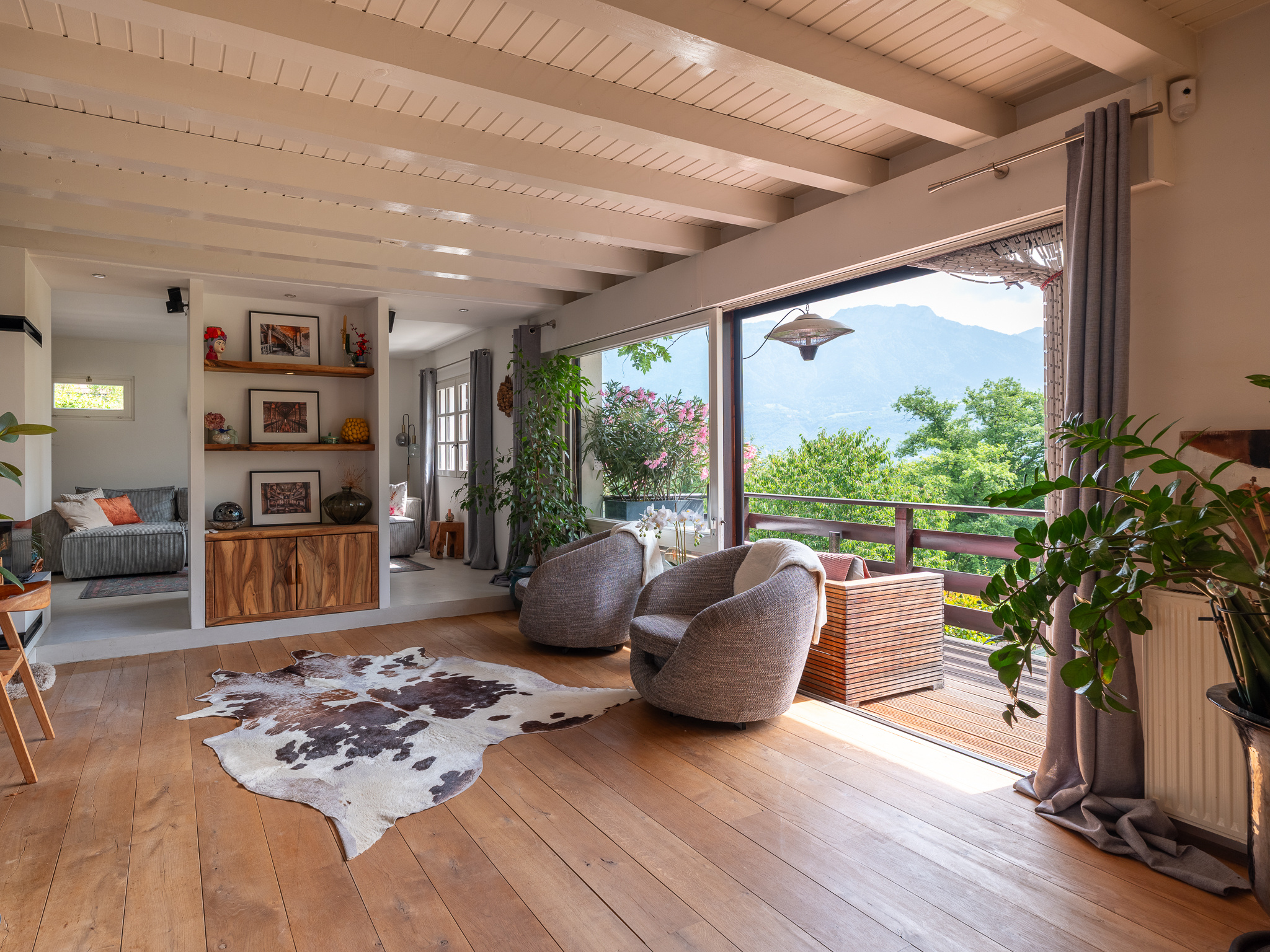 Décoration élégante, ambiance chaleureuse, prestations de qualité. Une propriété idéale pour une vie de famille au calme, entre lac et montagnes.