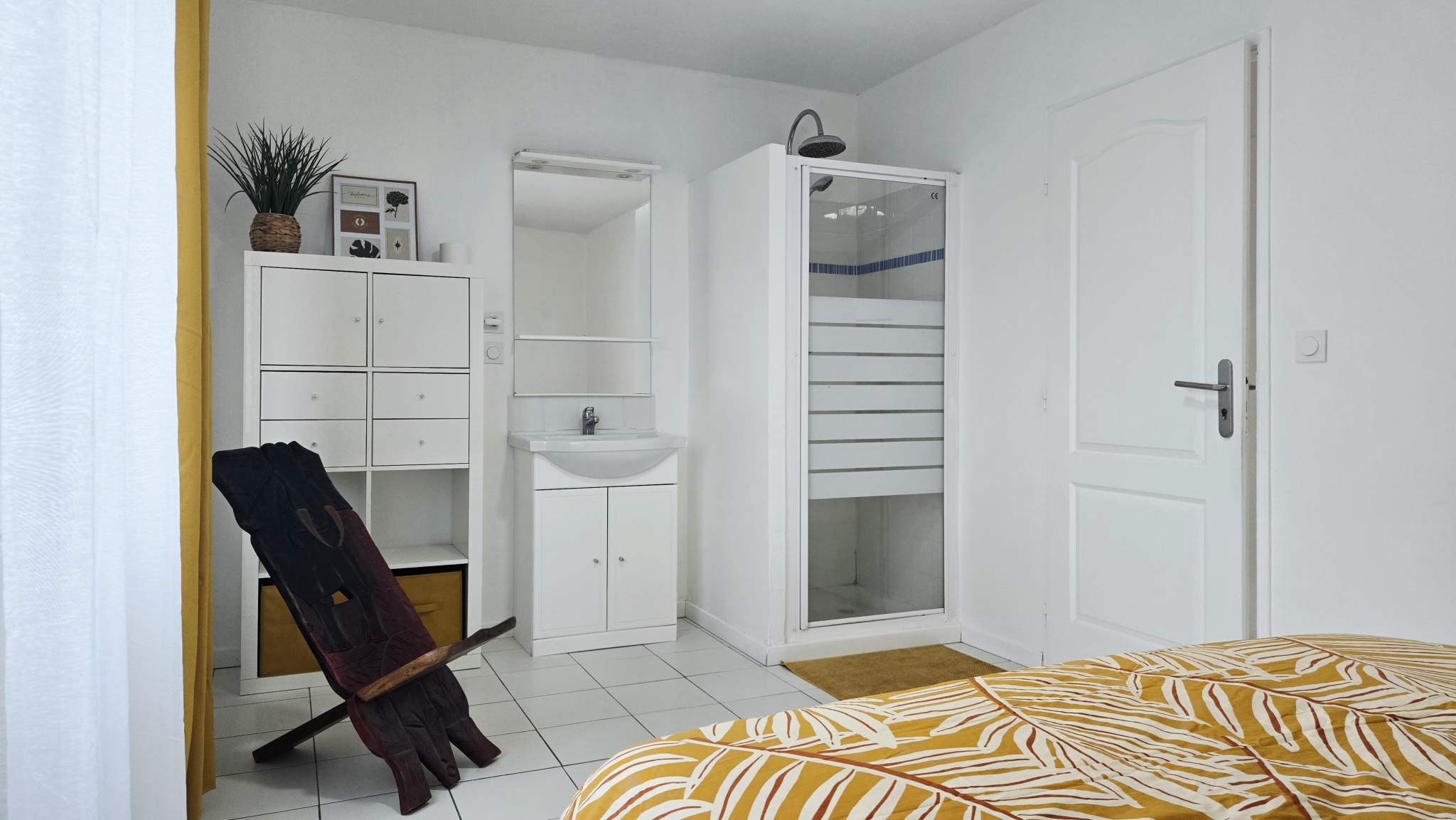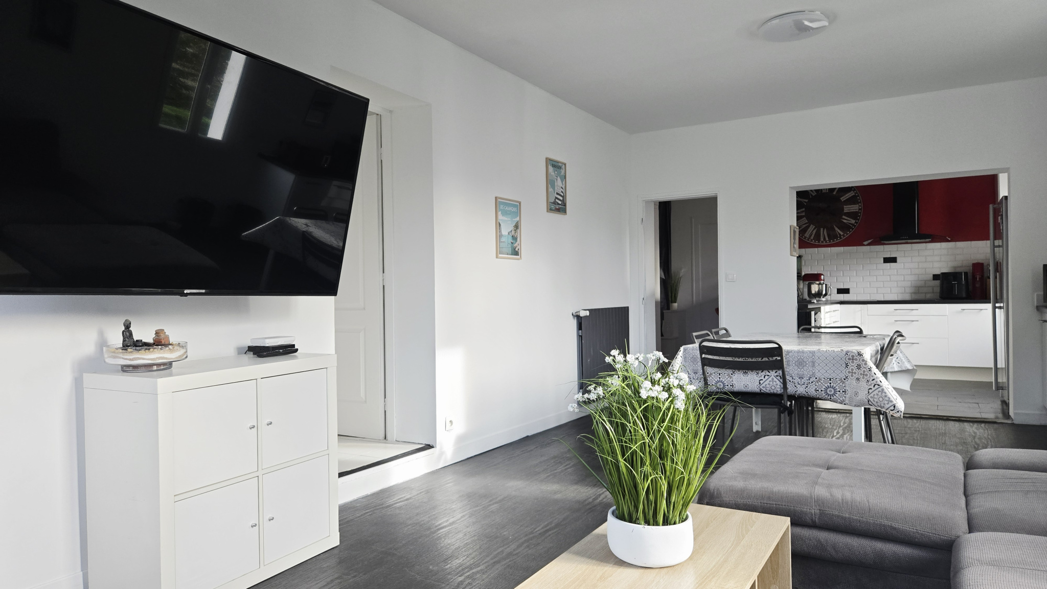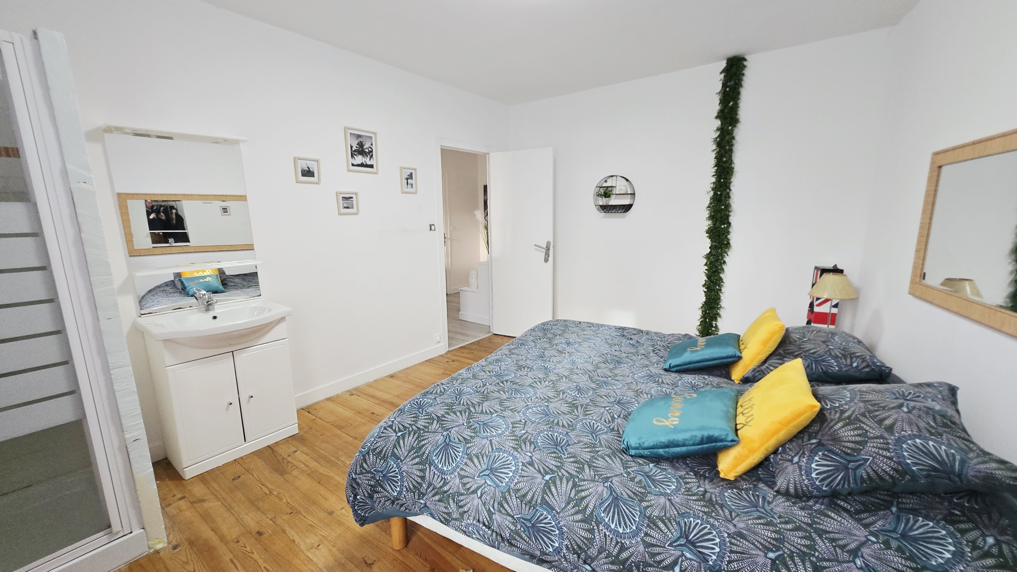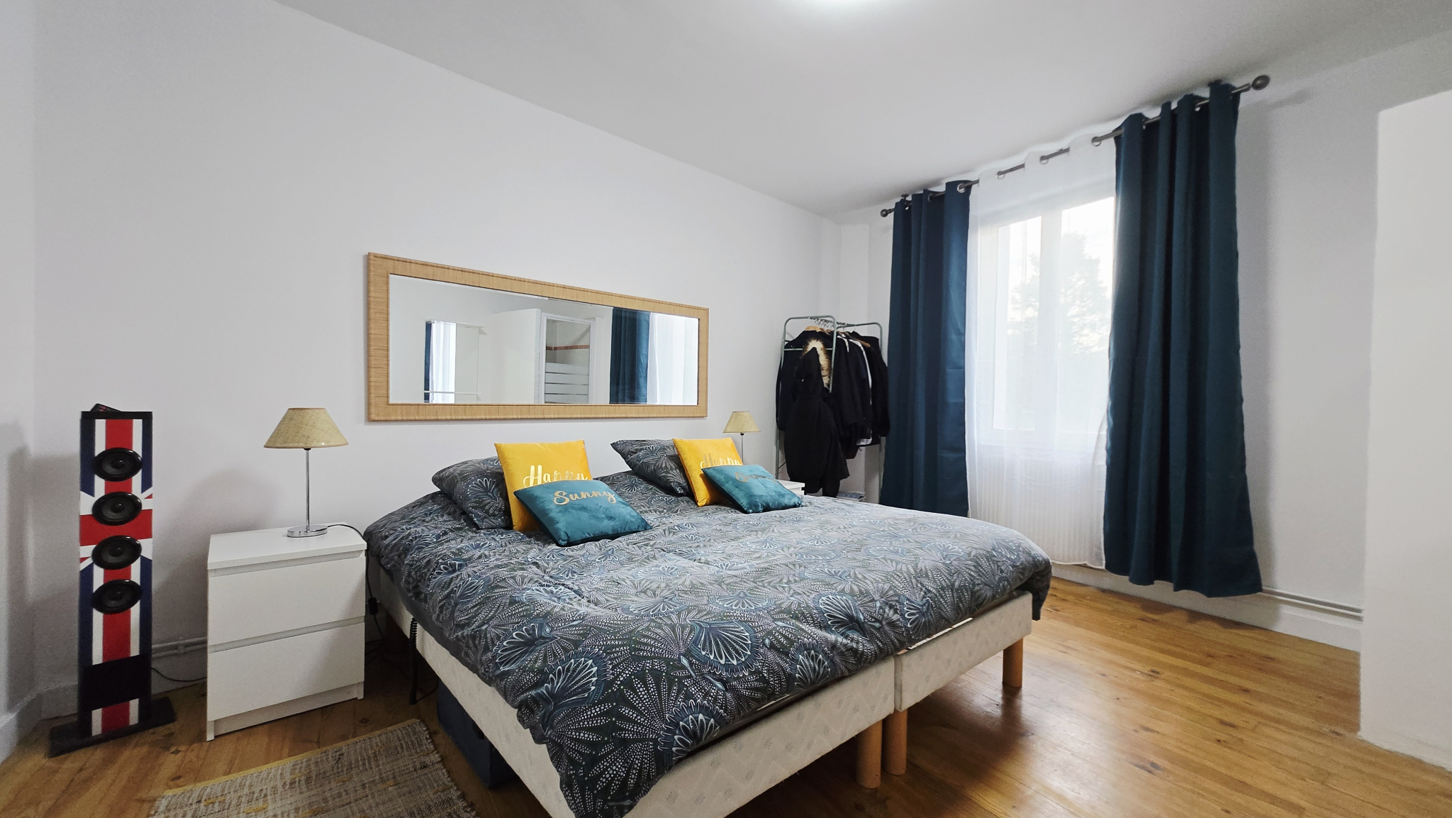 Un appartement T5 d'environ 115m2, situé au premier étage. Il est composé d'une cuisine aménagée ouverte sur un séjour offrant une pièce de vie de plus de 35m2. Les quatres chambres sonts équipées d'une salle d'eau privative. En rez-de-chaussée se trouve une pièce de 25m2, pouvant être aménagée en garage, en bureau, en local professionnel...Cour privative sécurisée. Cet appartement est vendu libre de toute location.