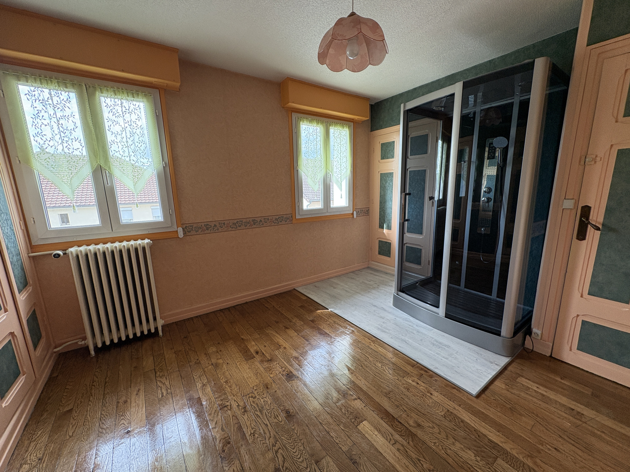 Venez découvrir cette maison familiale comprenant au rez-de-chaussée une entrée, une cuisine aménagée et totalement équipée, une salle de bains ( baignoire et douche), un WC, un grand salon-séjour de 32 m2; au premier étage trois belles chambres avec parquets, placards dont une avec douche, wc. Dans les combles aménagés au deuxième étage une chambre et un bureau. La maison est tres bien entretenue, fenêtres en PVC double vitrage avec volets éléctriques, chauffage au GAZ, possibilité de mettre un poêle à bois ou granules ( sortie tubée déja existante). DPE D. Une cave. Un garage avec porte motorisée, un chalet pour ranger tout le matériel de jardin. Terrain de 285m2. Venez découvrir cette maison proche commerces de proximité et écoles ou vous n'aurez plus qu'à mettre à votre gout.