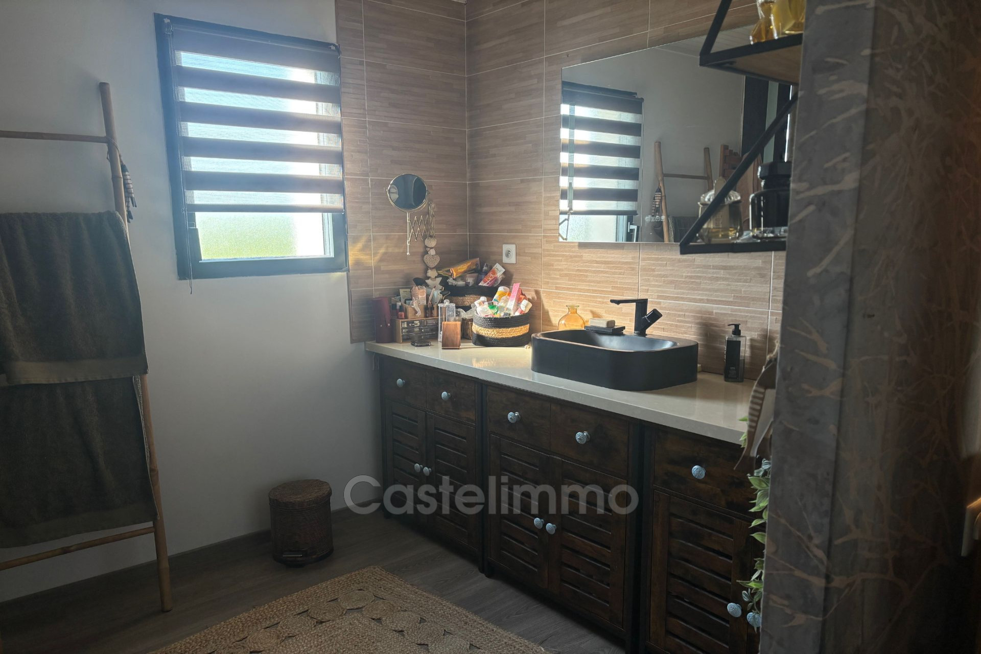 La maison se compose au rez-de-chaussée, d'un grand espace de vie lumineux avec salon/séjour et une cuisine américaine et équipée, une buanderie donnant accès à un double garage avec portail électrique et un WC séparé. La partie nuit se compose d'une chambre parentale avec dressing et salle d'eau.